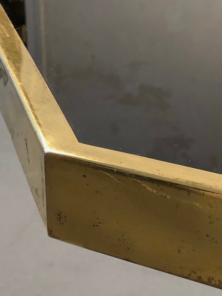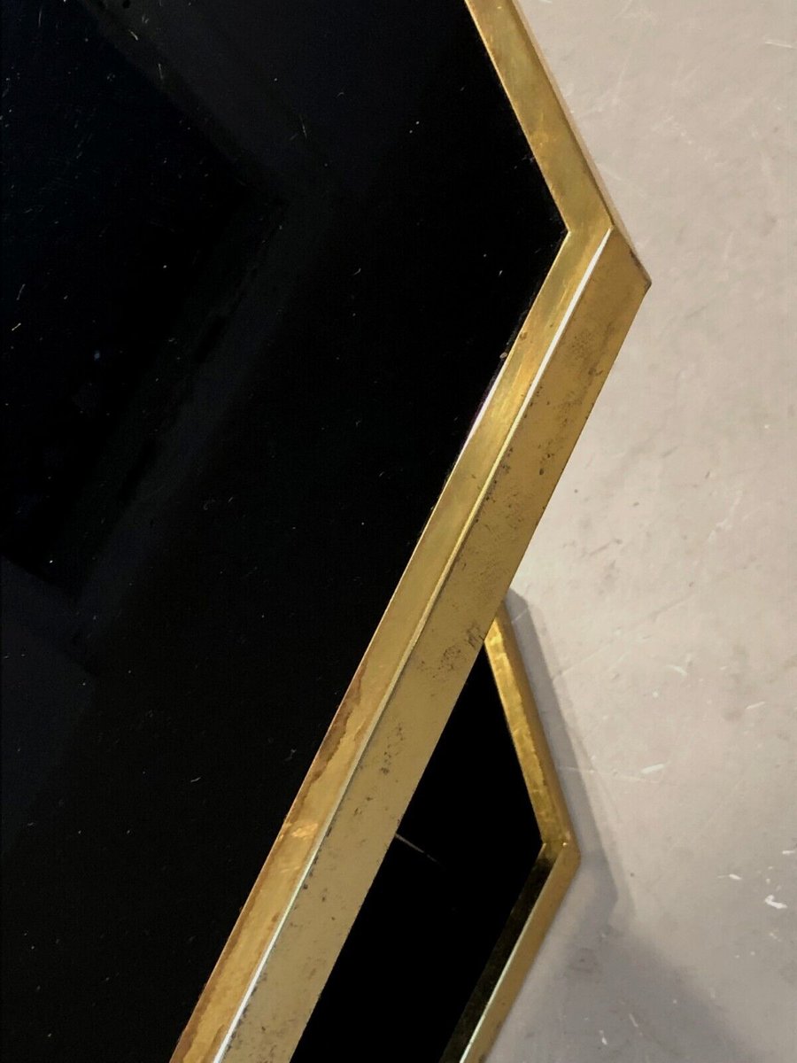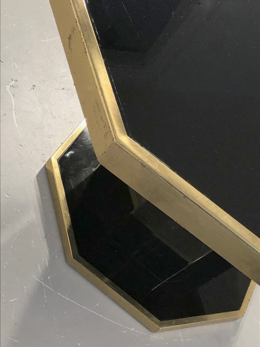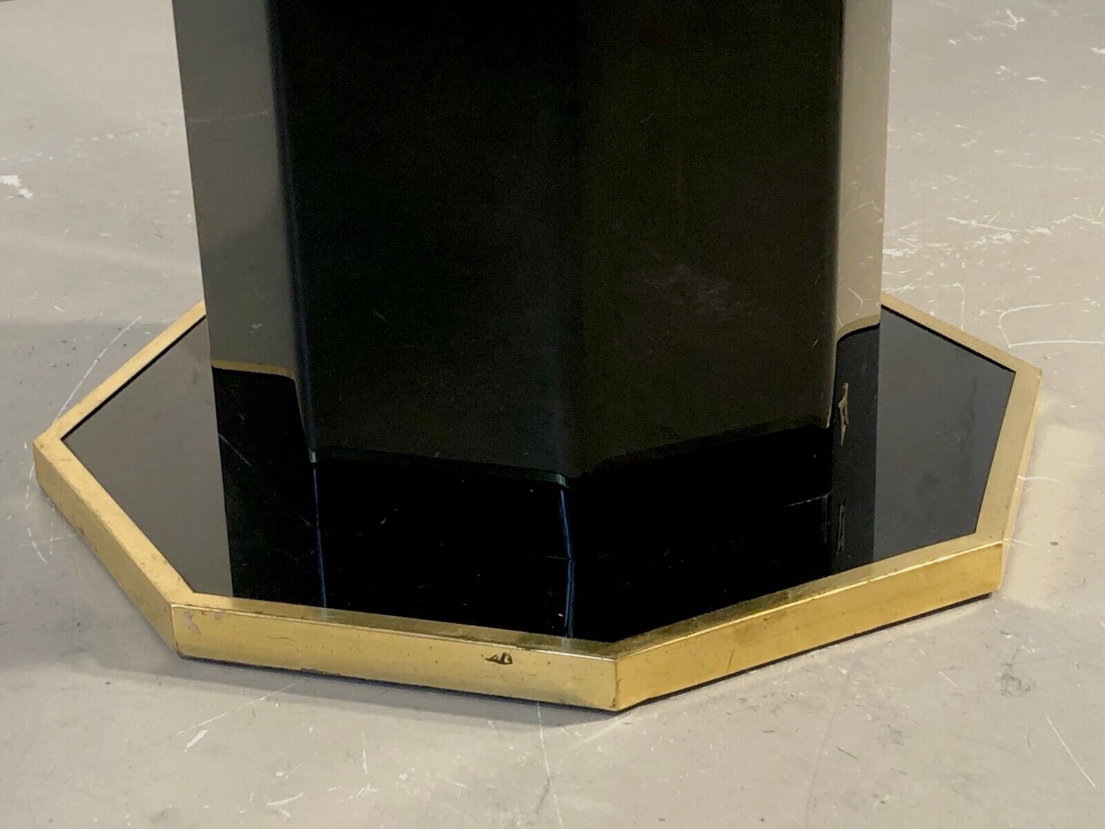 Eine beeindruckende und sehr schicke achteckige Abendessen, post-modernistischen, shabby-chic, achteckigen schwarz lackiertem Holzsockel durch eine Bronze oder goldenen Messing-Gürtel, schwarz achteckige Säule in schwarz lackiertem Holz, große achteckige Holztablett Schwarzer Lack durch eine Bronze oder vergoldetem Messing Grenze, Signature EM EM in goldenem Messing, von Eric Maville, Frankreich 1970-1980 umlaufenden.