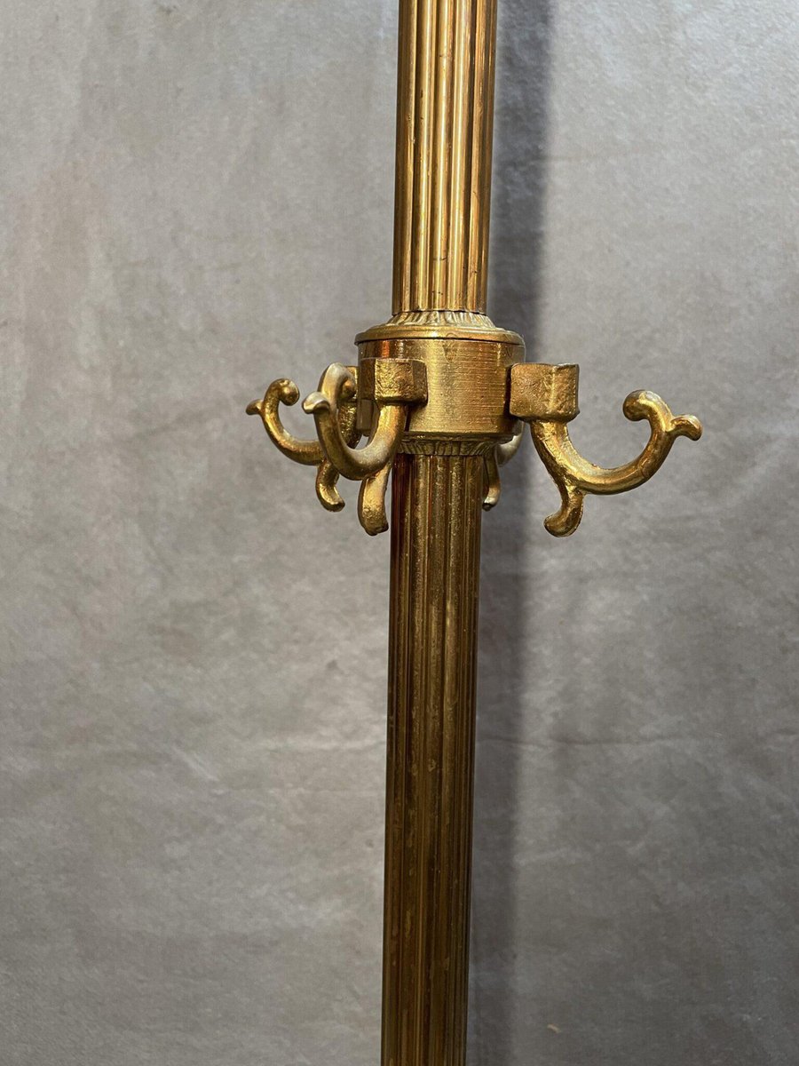 Dieser bemerkenswerte Garderobenständer aus antikem Messing ist eines der außergewöhnlichsten Stücke. Mit seinen fein gegossenen Pferde- und Sonnenmotiven hebt sich der Ständer durch seine aufwändige Handwerkskunst von typischen freistehenden Designs ab. Der Ständer steht auf einem flachen, dreibeinigen Sockel und zeigt eine elegante, detaillierte Form, die die klassischen Einflüsse der frühen dekorativen Kunst widerspiegelt. Vier Messingbügel sind auf halber Höhe des Ständers angebracht und bieten Funktionalität, ohne den Stil zu beeinträchtigen. Dieses unverwechselbare Stück ist perfekt geeignet, um jedem Interieur sowohl historischen Charme als auch praktischen Nutzen zu verleihen. Die Abmessungen sind 180 cm hoch und 40 cm im Durchmesser.