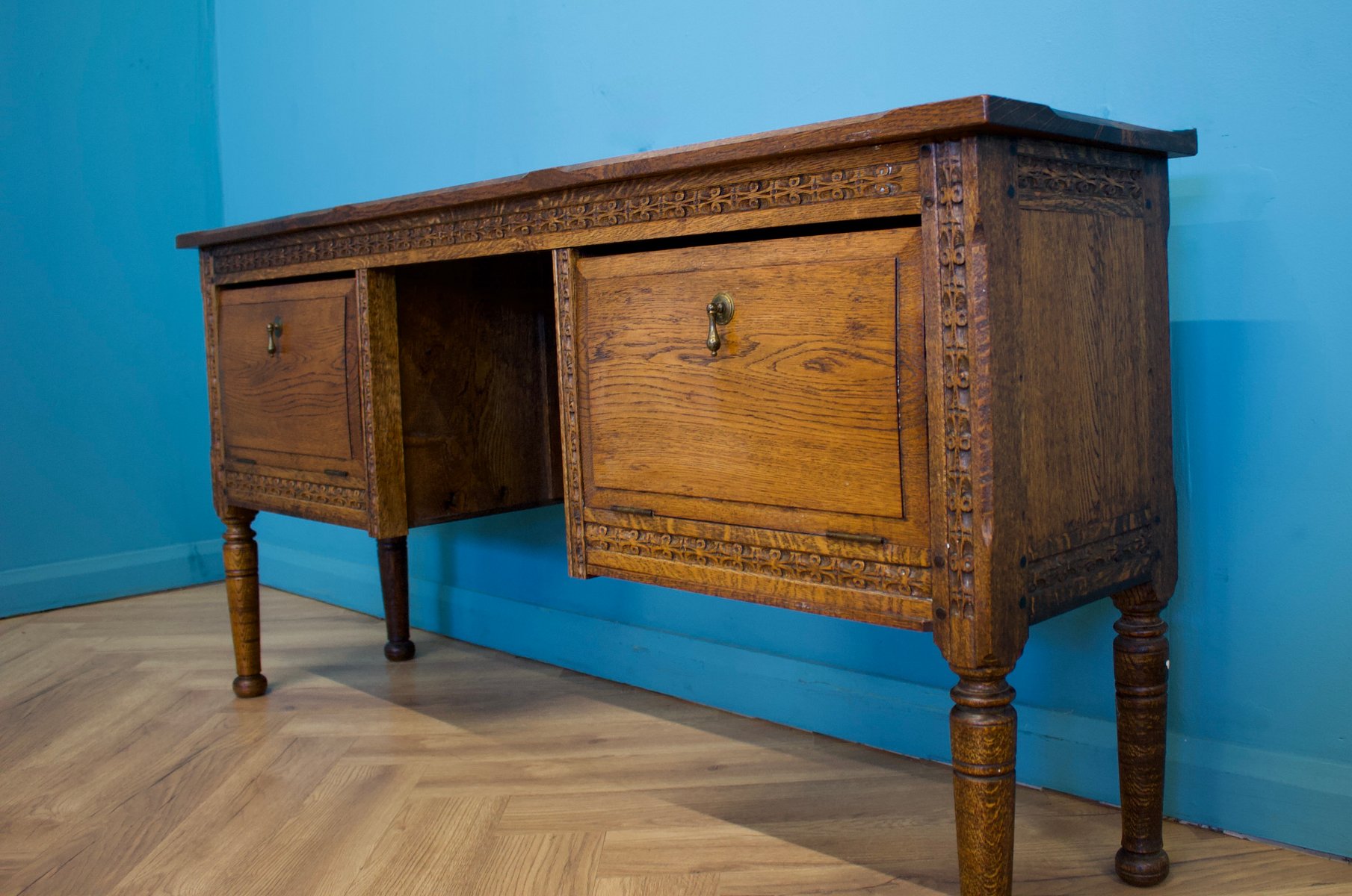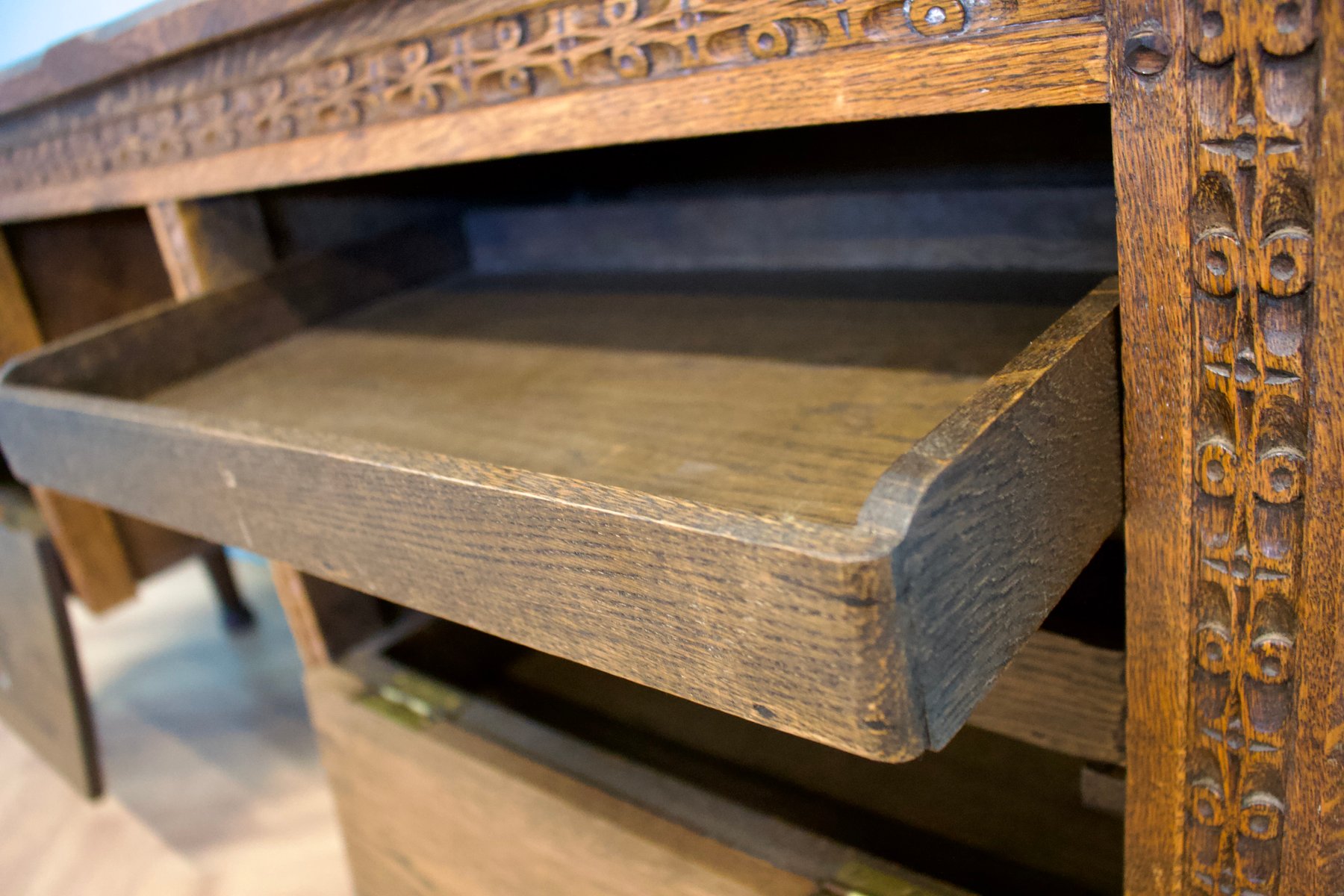 Antiker Beistelltisch oder Sideboard aus geschnitzter Eiche, 19. Jh.