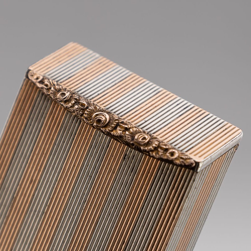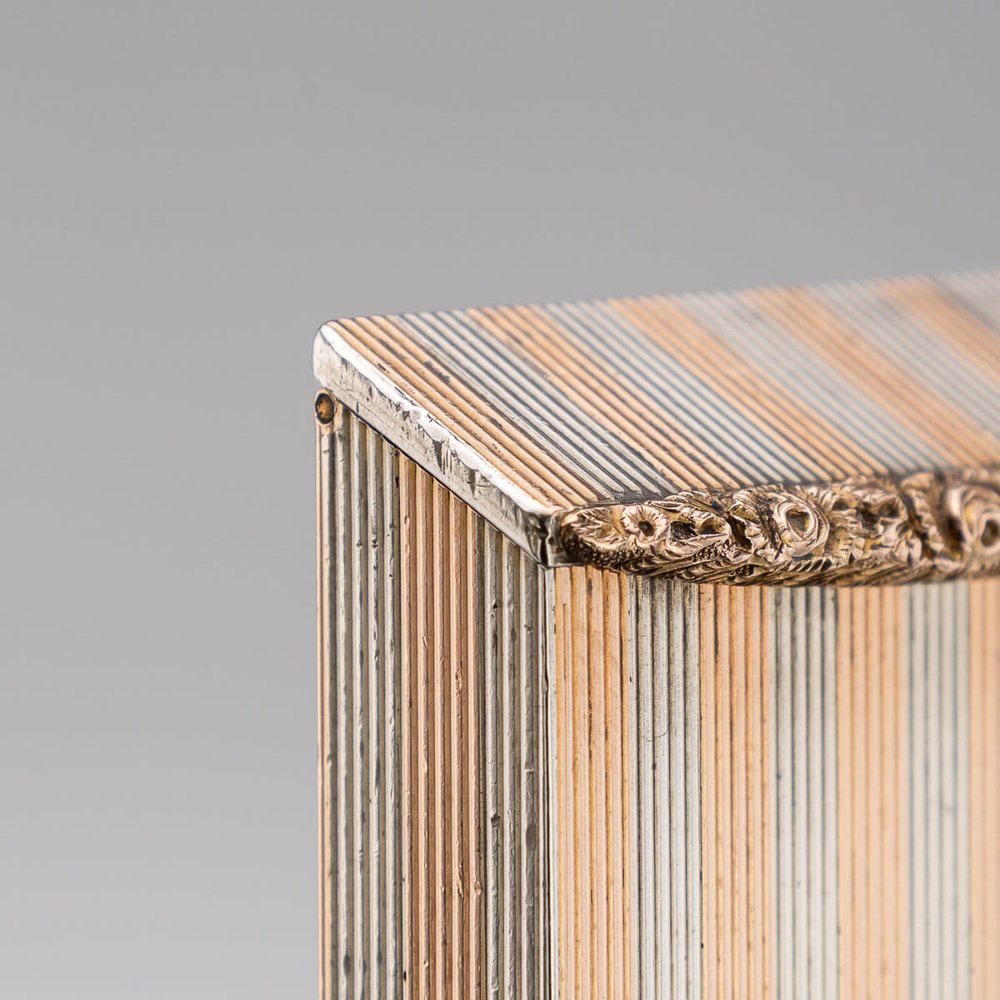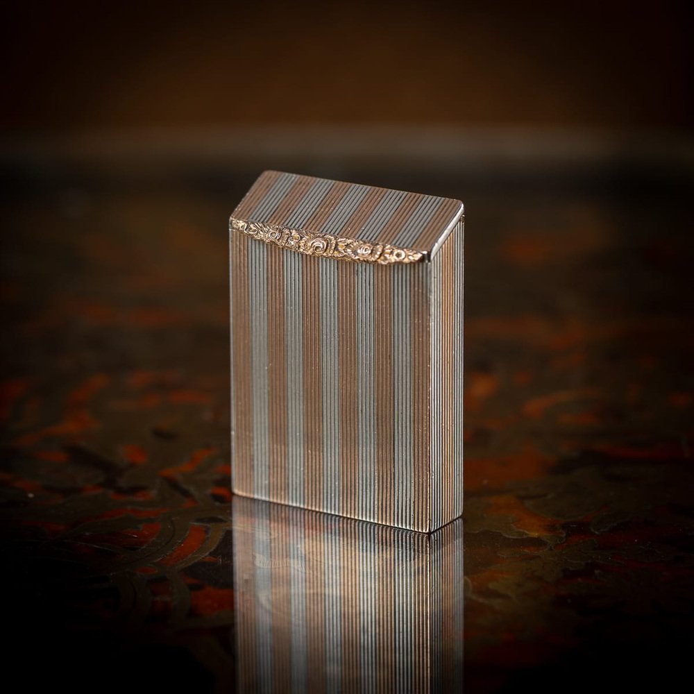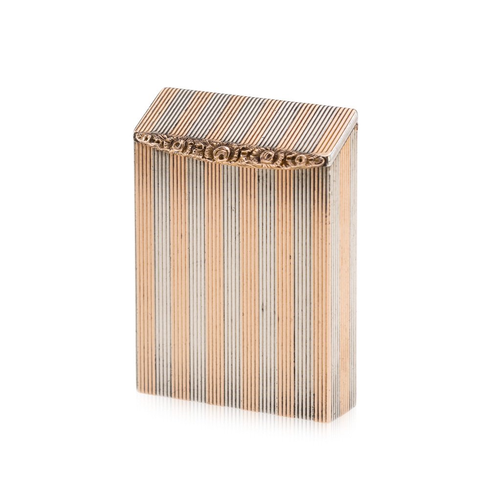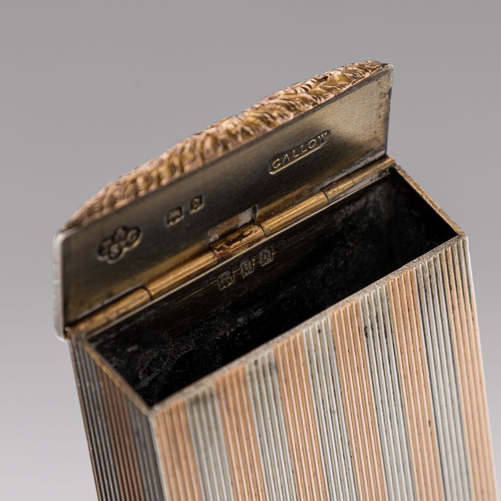 Antiker englischer Streichholzhalter aus Silber & 9 Karat Gold, 20. Jh., 1919