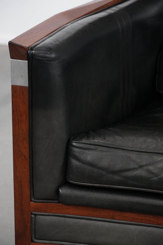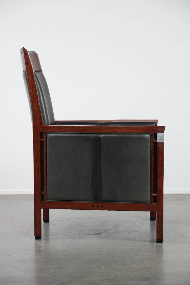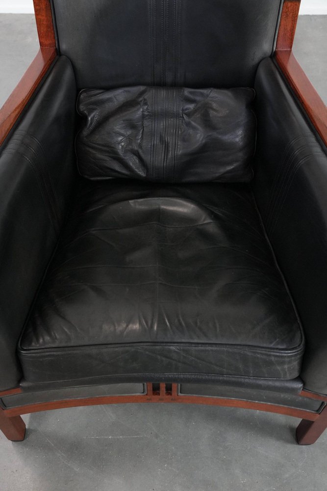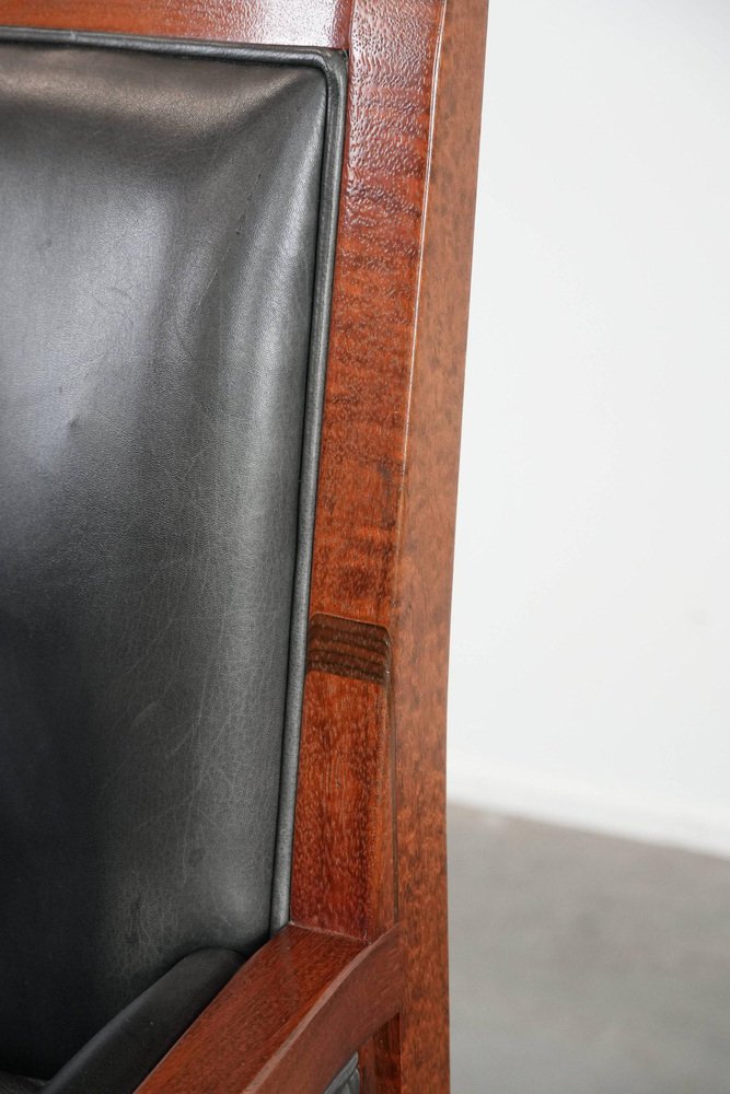 Art Deco Decoforma Series Armlehnstuhl aus Schwarzem Rindsleder & Holz