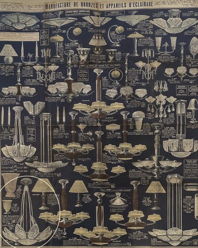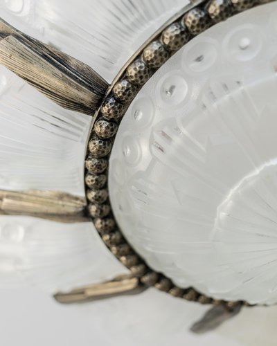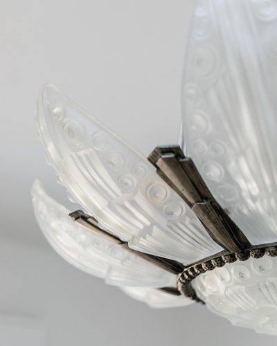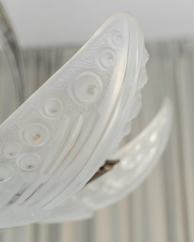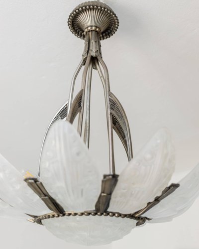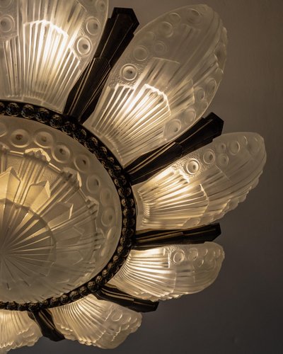 Art Deco Kronleuchter aus Bronze & Glas von Georges Leleu, Frankreich, 1930er