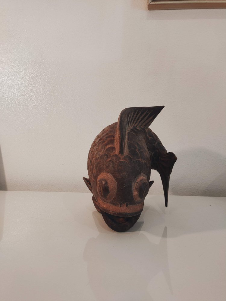 Asiatische Vintage Koi Fisch Skulptur oder Vase aus Terrakotta, 1960er