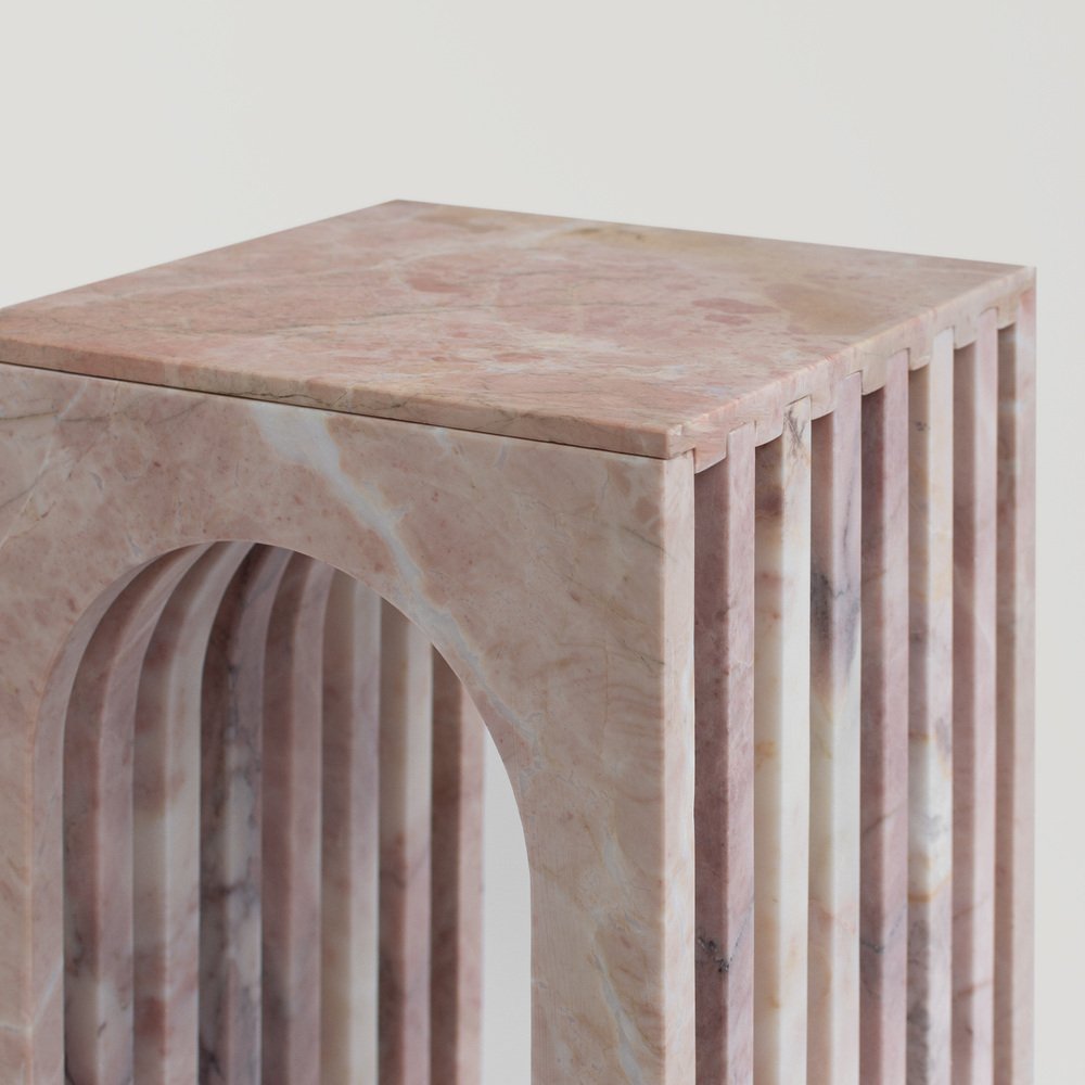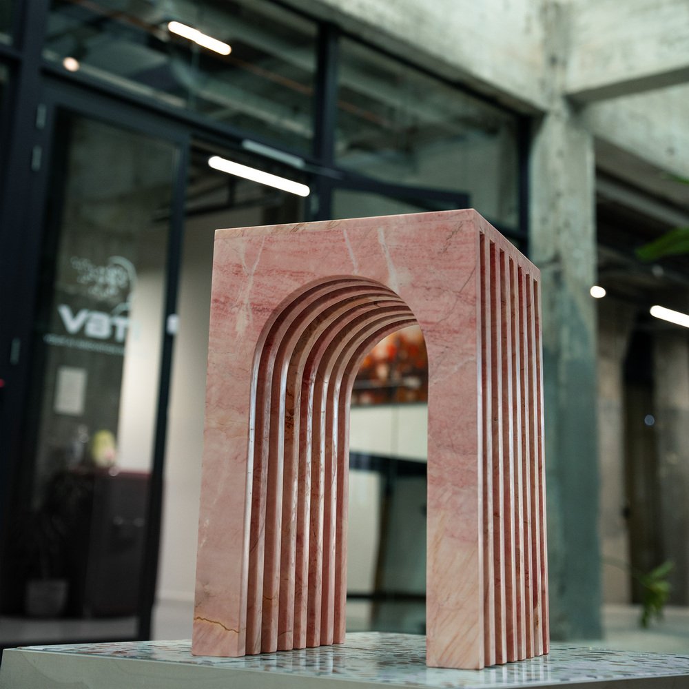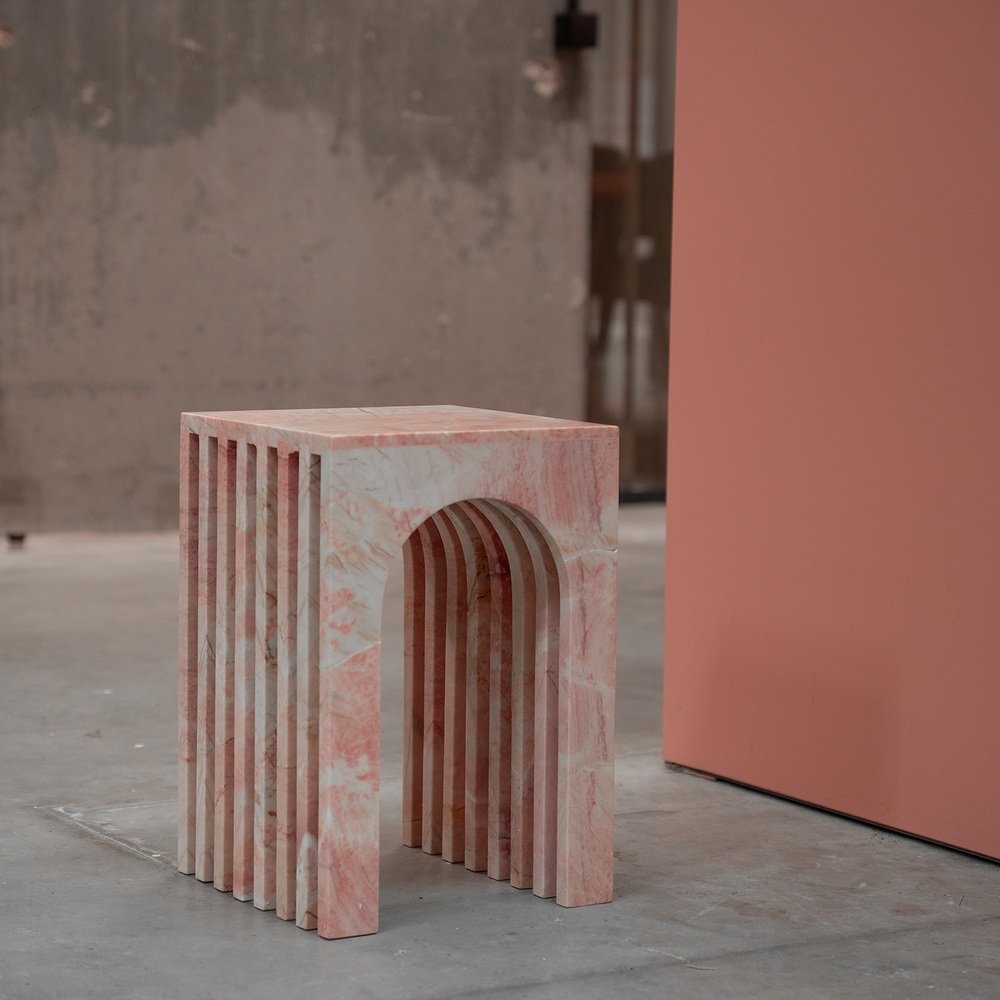Arched Side Table in Travertine - Beige - Elevate your living space with the handcrafted Arched Side Table, luxurious layers designed to bring a touch of sophistication to any interior setting. These tables can be seamlessly incorporated as a side table, positioned next to a couch or bed, or even in your office space. Crafted from honed Travertine Stone, their clean curves and smooth surfaces exude elegance, while the understated beige tones effortlessly complement any interior style. The minimalist-inspired design creates a serene atmosphere, allowing you to curate a stylish ambience in your space. Size: 30 x 30 x 45 cm
