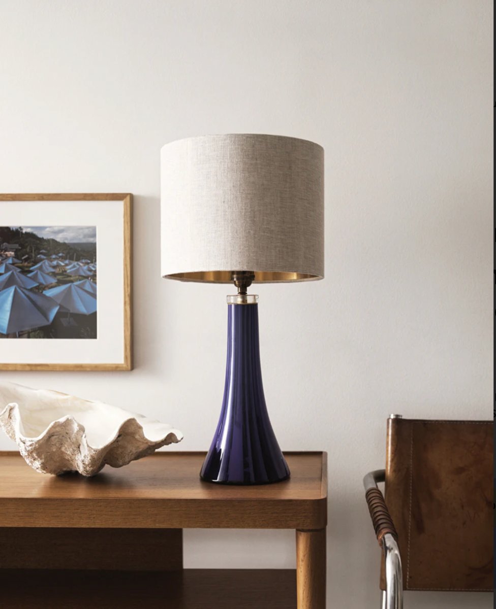 Blaue Mid-Century Glas Tischlampe von Hyllinge, 1960er