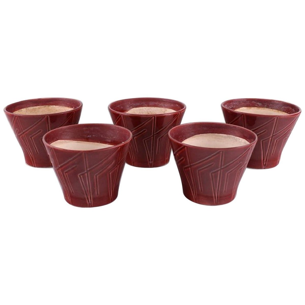 Bo Fajans Marianne Blumentöpfe aus glasierter Keramik, 1960er, 5er Set