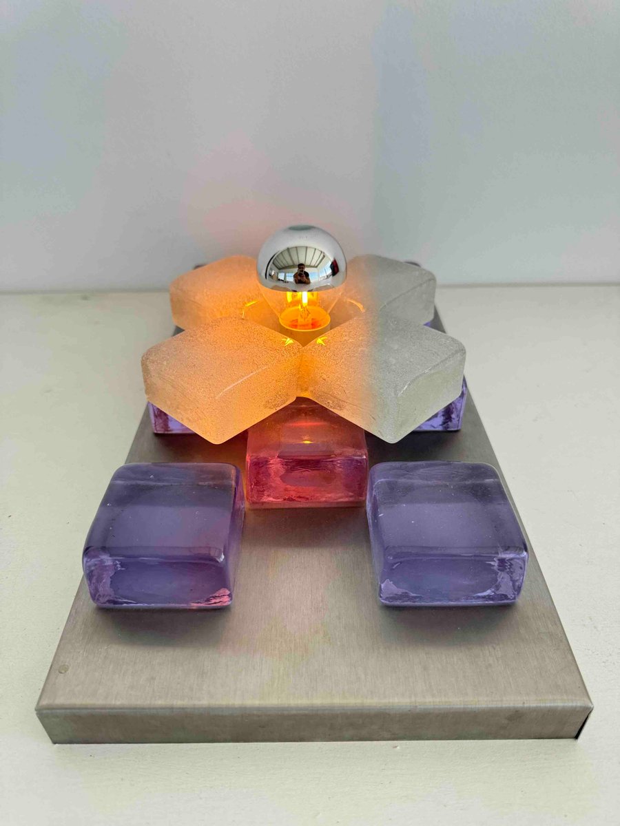 Polis Arbeit für Poliarte steht an der Schnittstelle von Brutalismus und venezianischer Glastradition - kühn, taktil und unverkennbar italienisch. Dieses Stück funktioniert wunderbar als Einzelstück oder als Teil einer modularen Anordnung und verleiht jeder Wand, die es schmückt, Rhythmus und Tiefe.