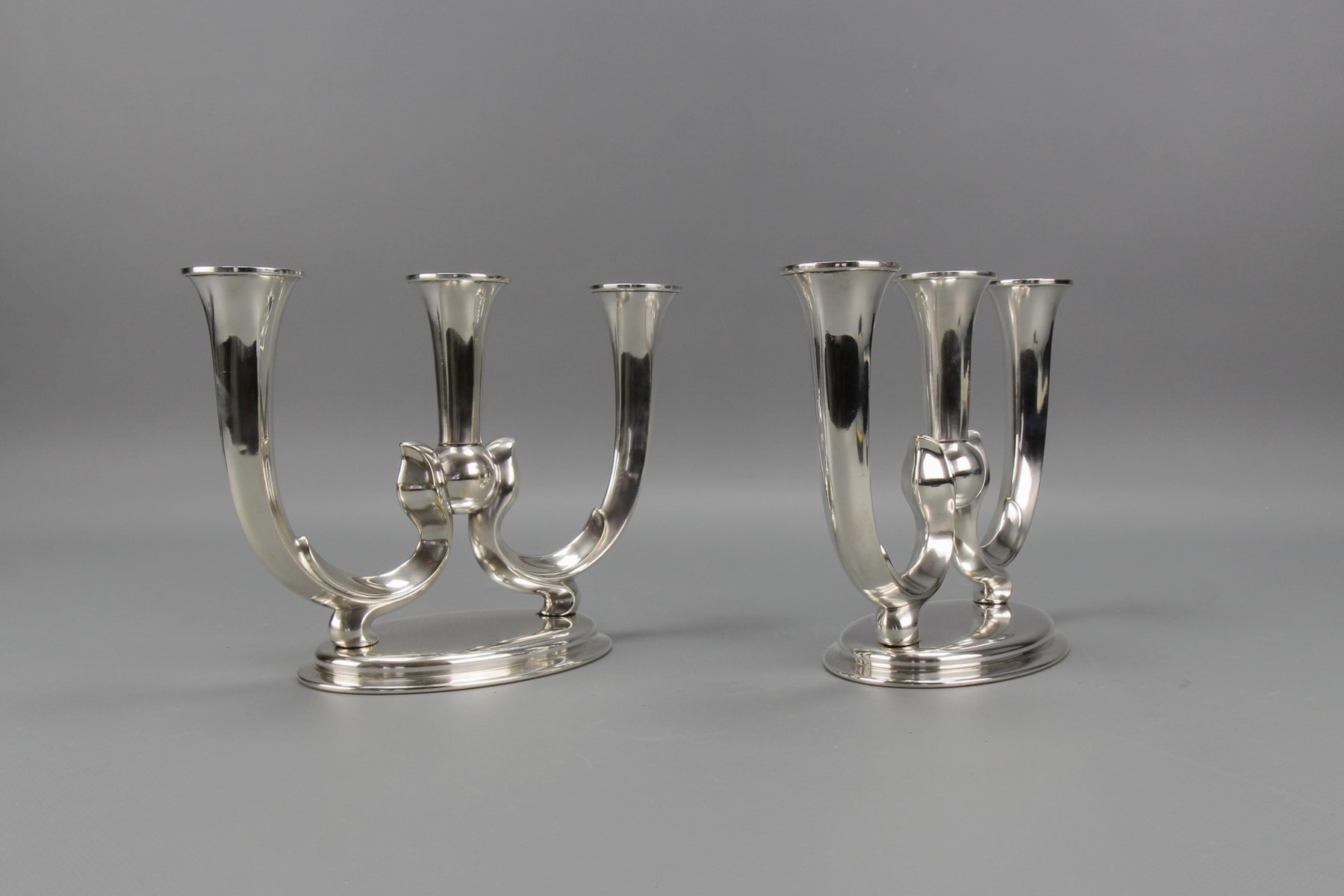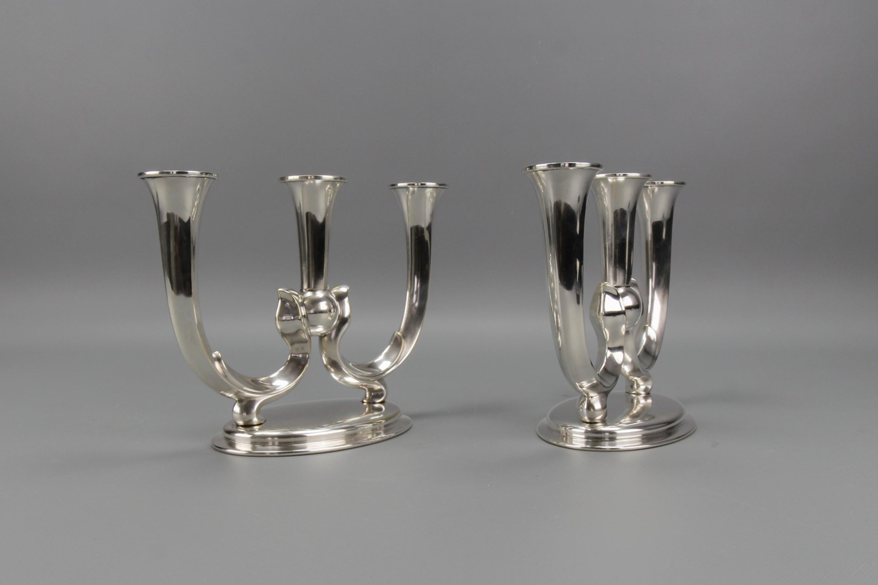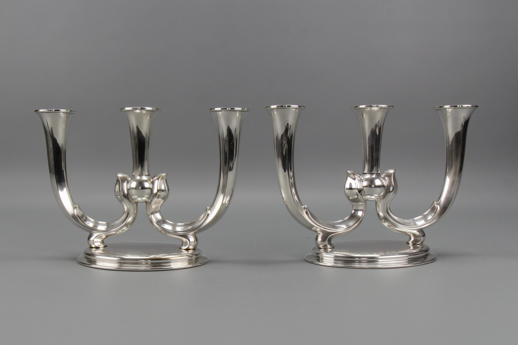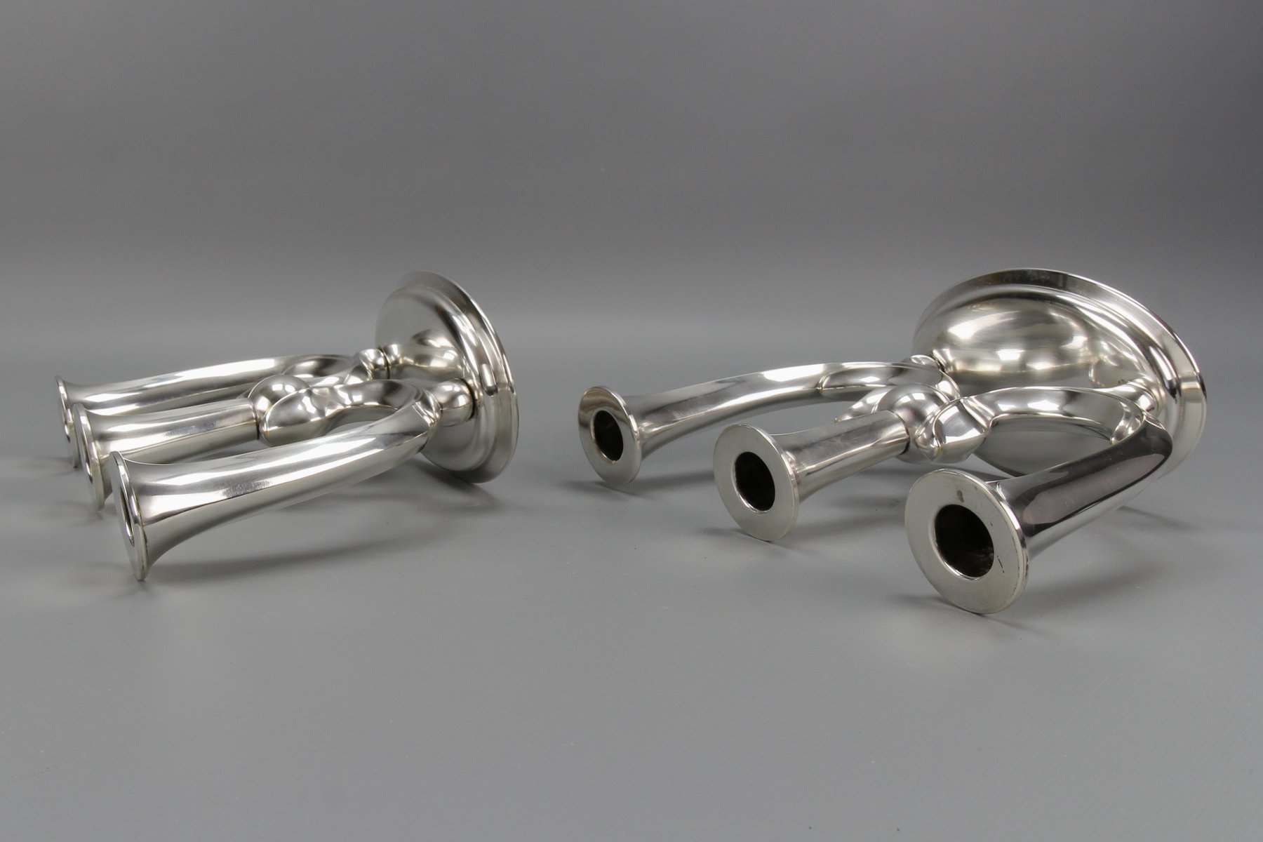 Deutsche Art Deco Kerzenhalter mit 3 Armen von WMF, 1930er, 2er Set