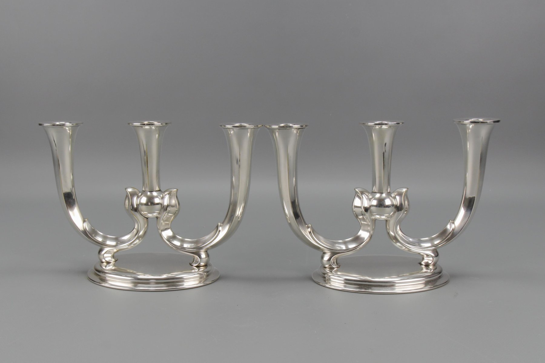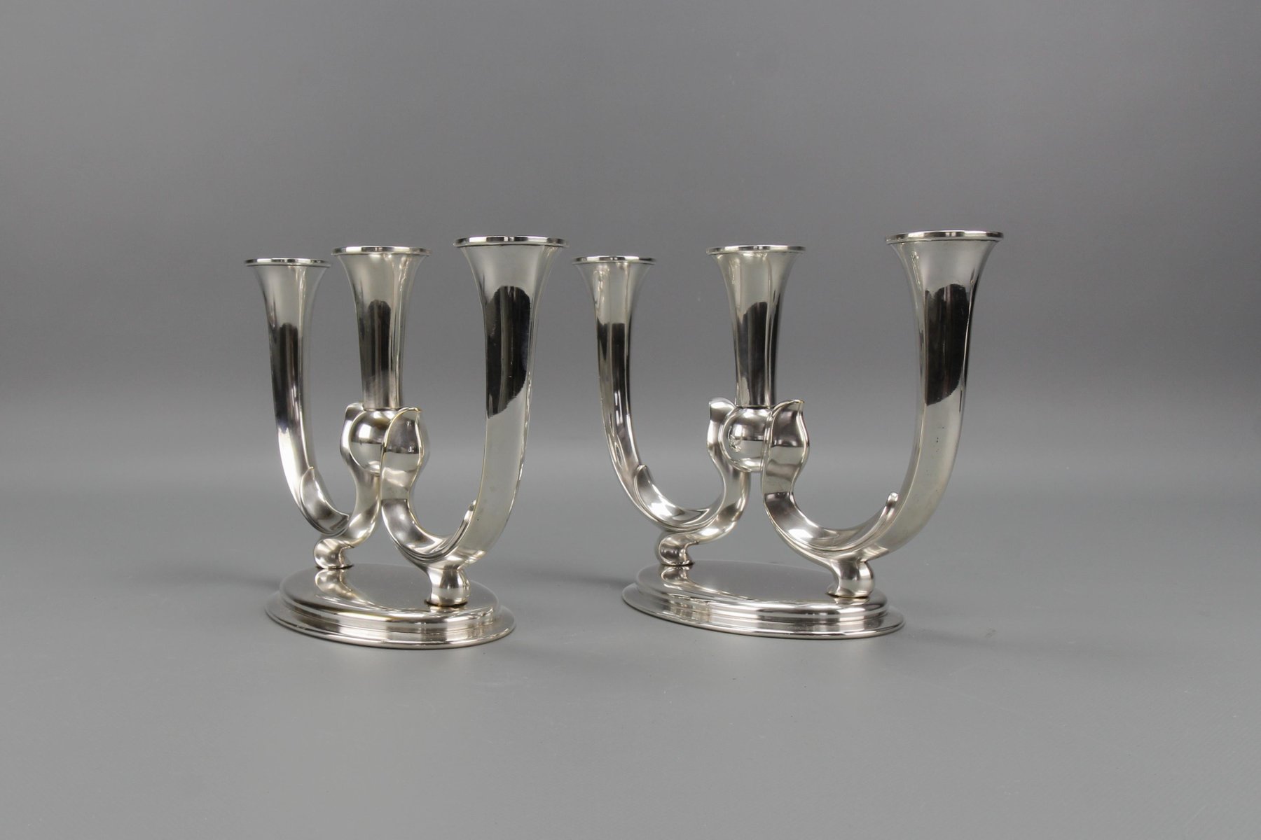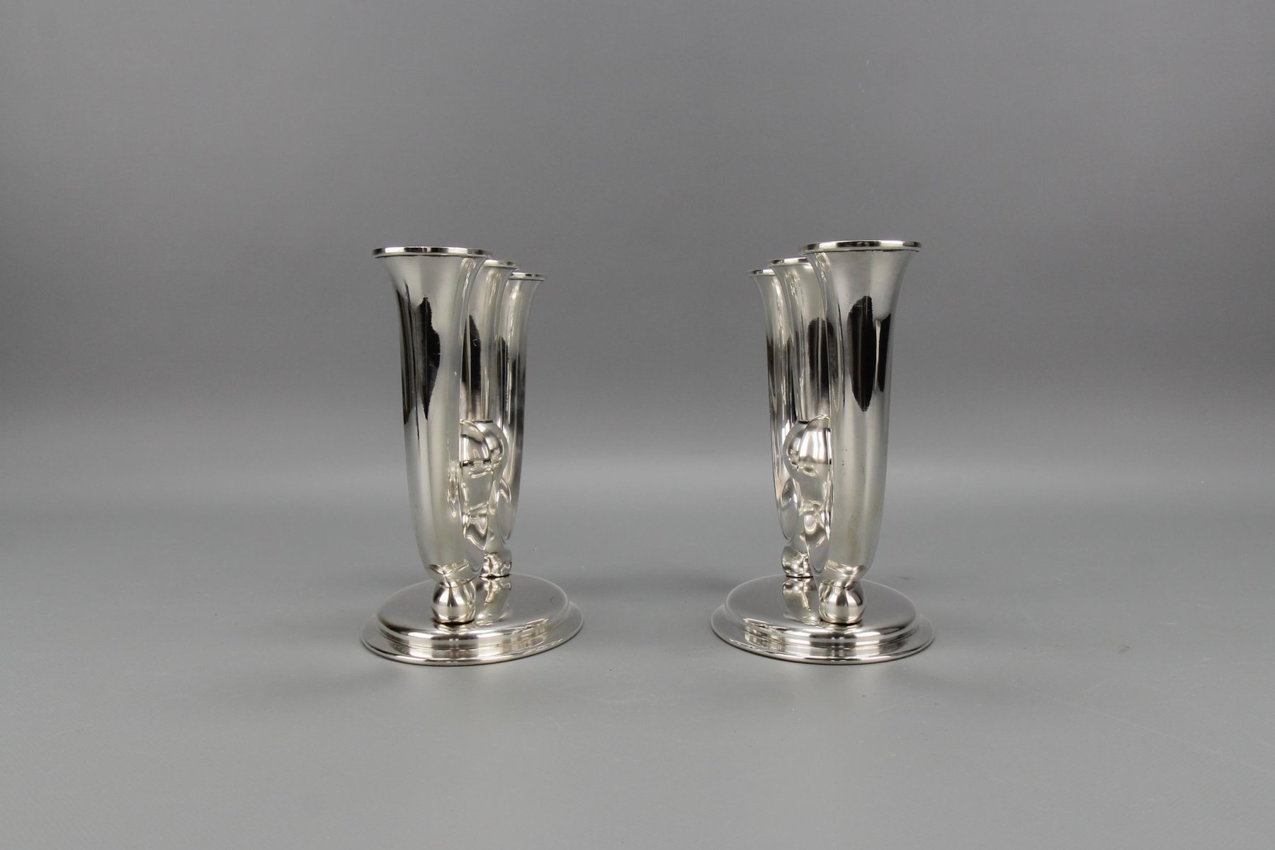 Deutsche Art Deco Kerzenhalter mit 3 Armen von WMF, 1930er, 2er Set