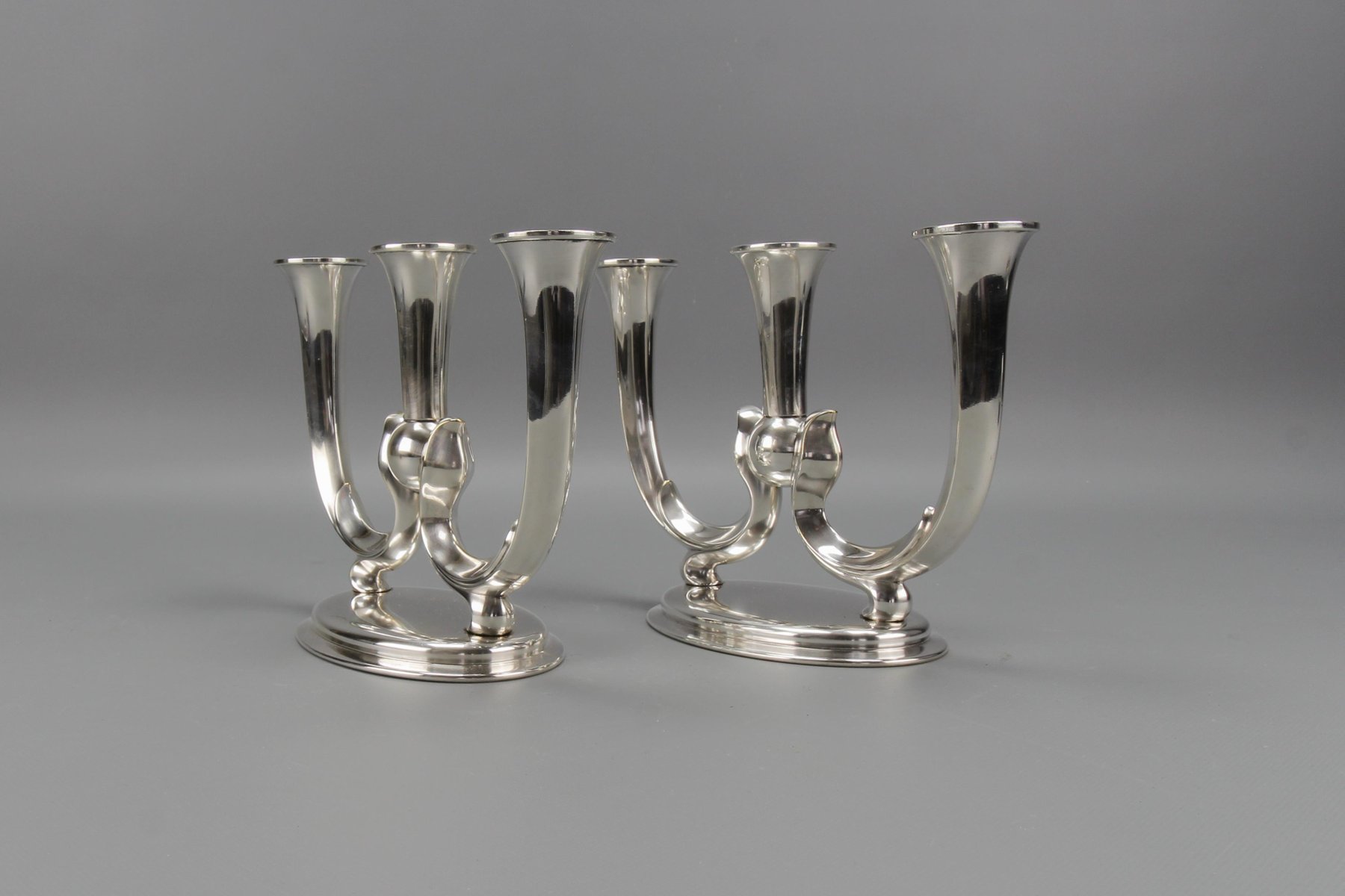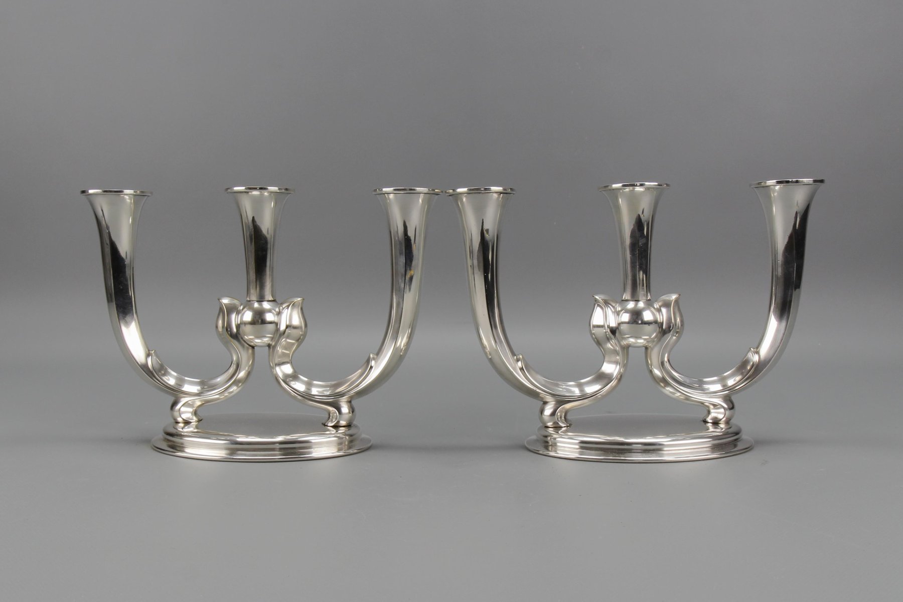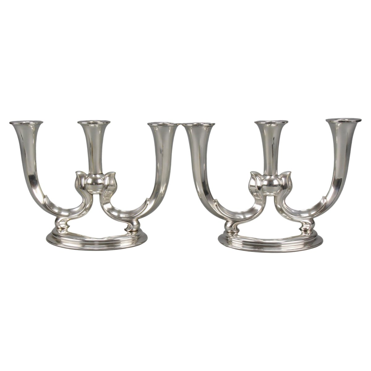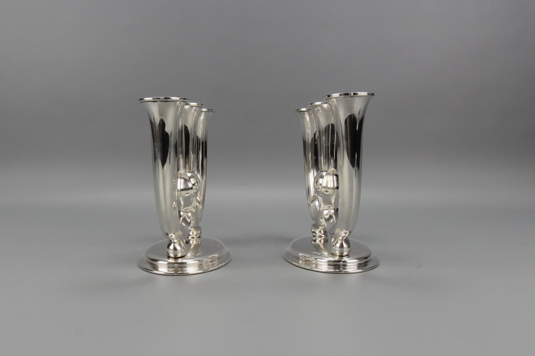Deutsche Art Deco Kerzenhalter mit 3 Armen von WMF, 1930er, 2er Set