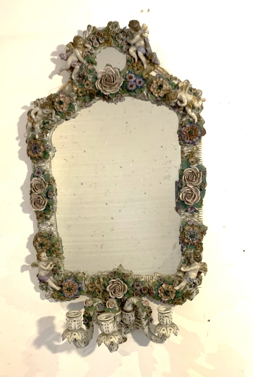 Deutsche Spiegel aus polychromem Porzellan, 2er Set