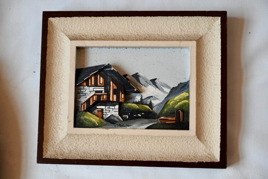 The jumble is made up of several paintings or mirrors. Engravings, lithographs, old photographs, paintings under glass... The elements are in good condition, they contain traces of use, discoloration and traces of time. The composition is proposed for the whole, it's up to you to organize the arrangement of the elements.
