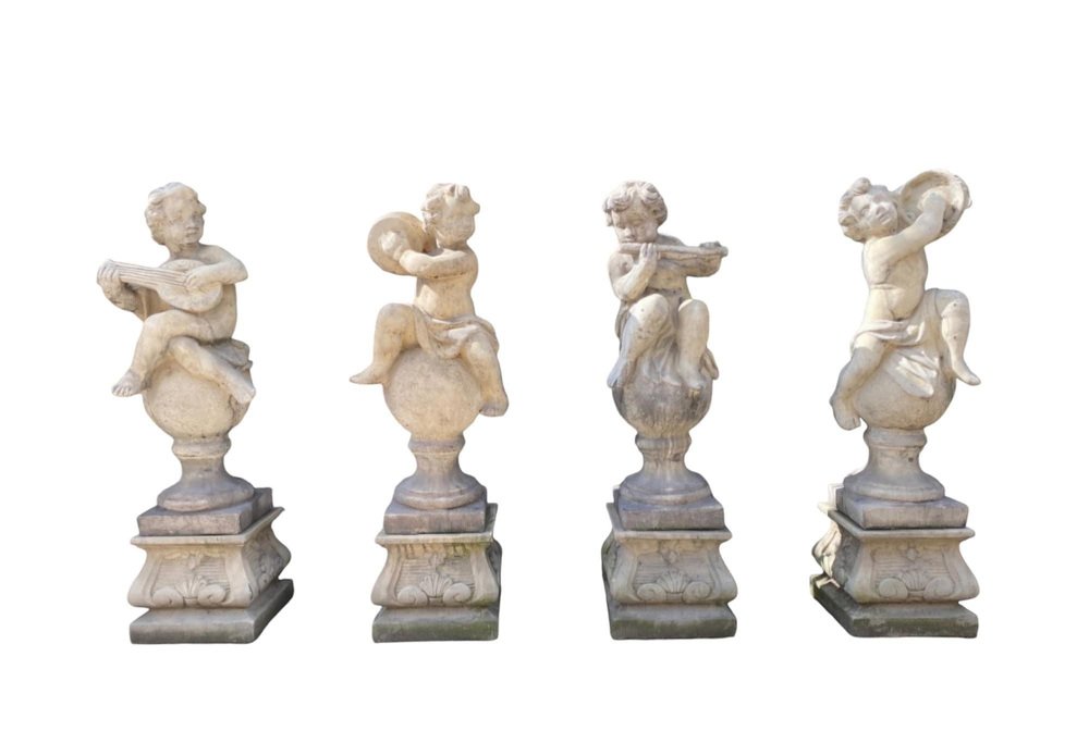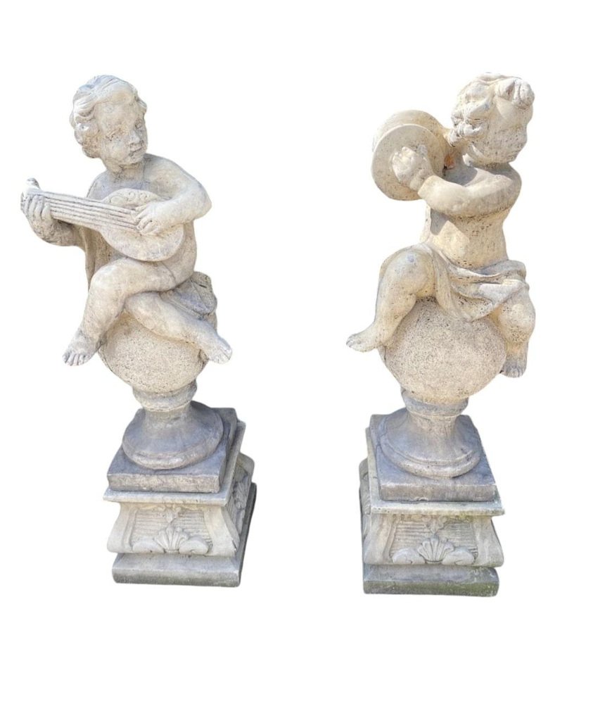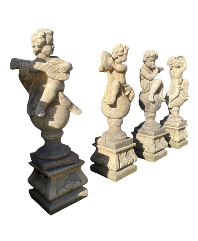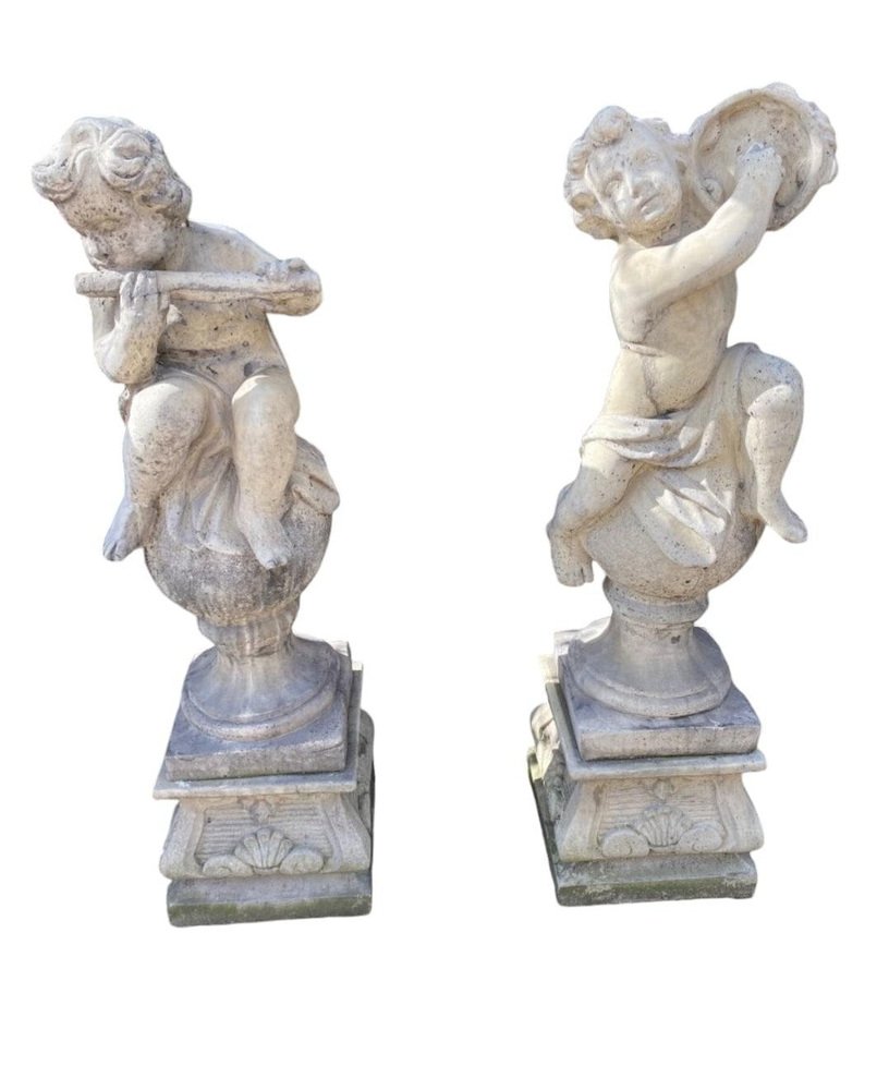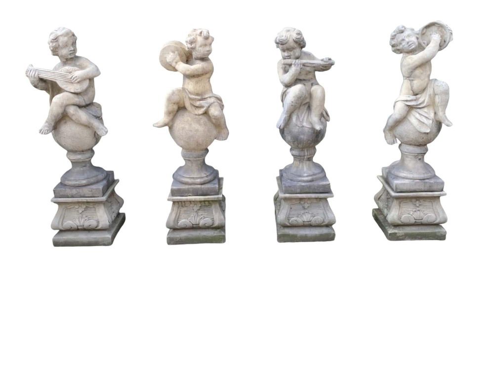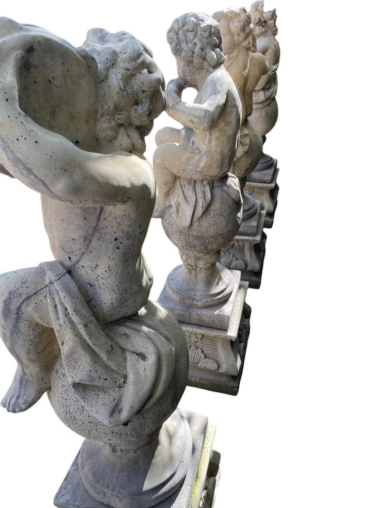 Transform your garden into a serene haven with this enchanting set of four garden stone sculptures, each beautifully representing a cherub. These charming pieces, standing at 100 cm tall, are crafted with meticulous detail and are in excellent condition, ready to bring a touch of whimsy and elegance to your outdoor space. Features: Quantity: Set of 4 Material: High-STONE Height: 130 cm each Design: Various cherubs Condition: Excellent, well-preserved Why These Sculptures Are Special: Exquisite Craftsmanship: Each cherub is carved with great attention to detail, capturing the innocence and charm of these angelic figures. Durability: Made from high-quality stone, these sculptures are built to withstand outdoor conditions while maintaining their beauty. Versatile Decor: Perfect for gardens, patios, or any outdoor space, these sculptures add a touch of elegance and tranquility. Timeless Appeal: Cherubs have been a beloved motif in art for centuries, and these sculptures bring that timeless charm to your garden. Ideal For: Garden enthusiasts looking to enhance their outdoor decor Homeowners wanting to add a classical touch to their garden Landscape designers seeking unique and beautiful pieces for their projects Don’t miss this opportunity to elevate your garden with these delightful stone cherub sculptures. Their timeless beauty and excellent condition make them a perfect addition to any outdoor space. Invite these charming cherubs into your garden and create a picturesque and serene atmosphere today!