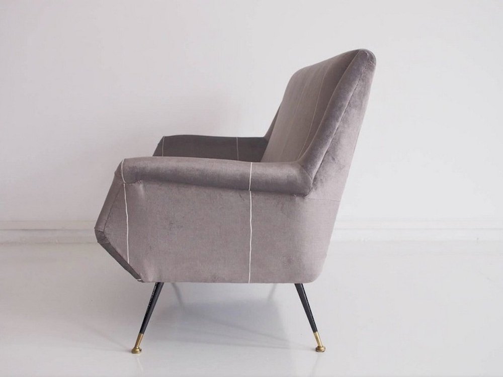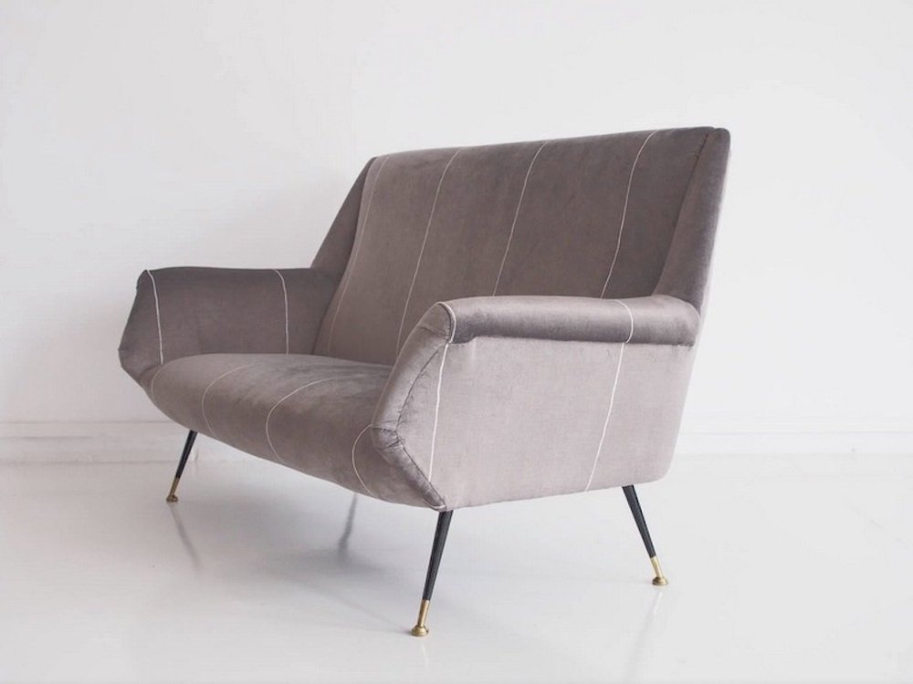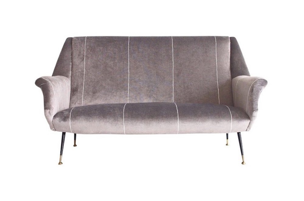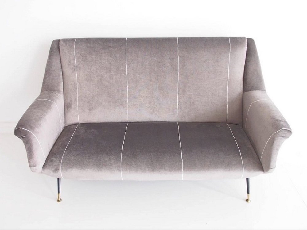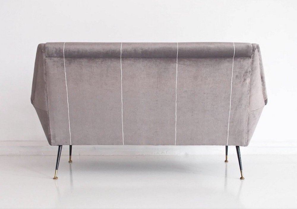 Graues italienisches Samtsofa mit schwarz lackierten Messingfüßen, 1950er