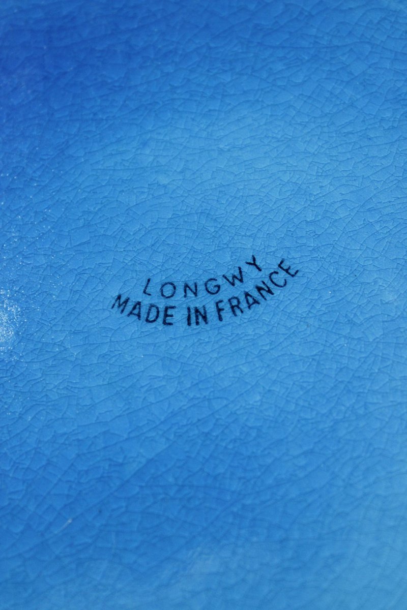 In beautiful condition, the only flaws to note are small, partially restored chips around the base. Longwy signature stamped underneath.