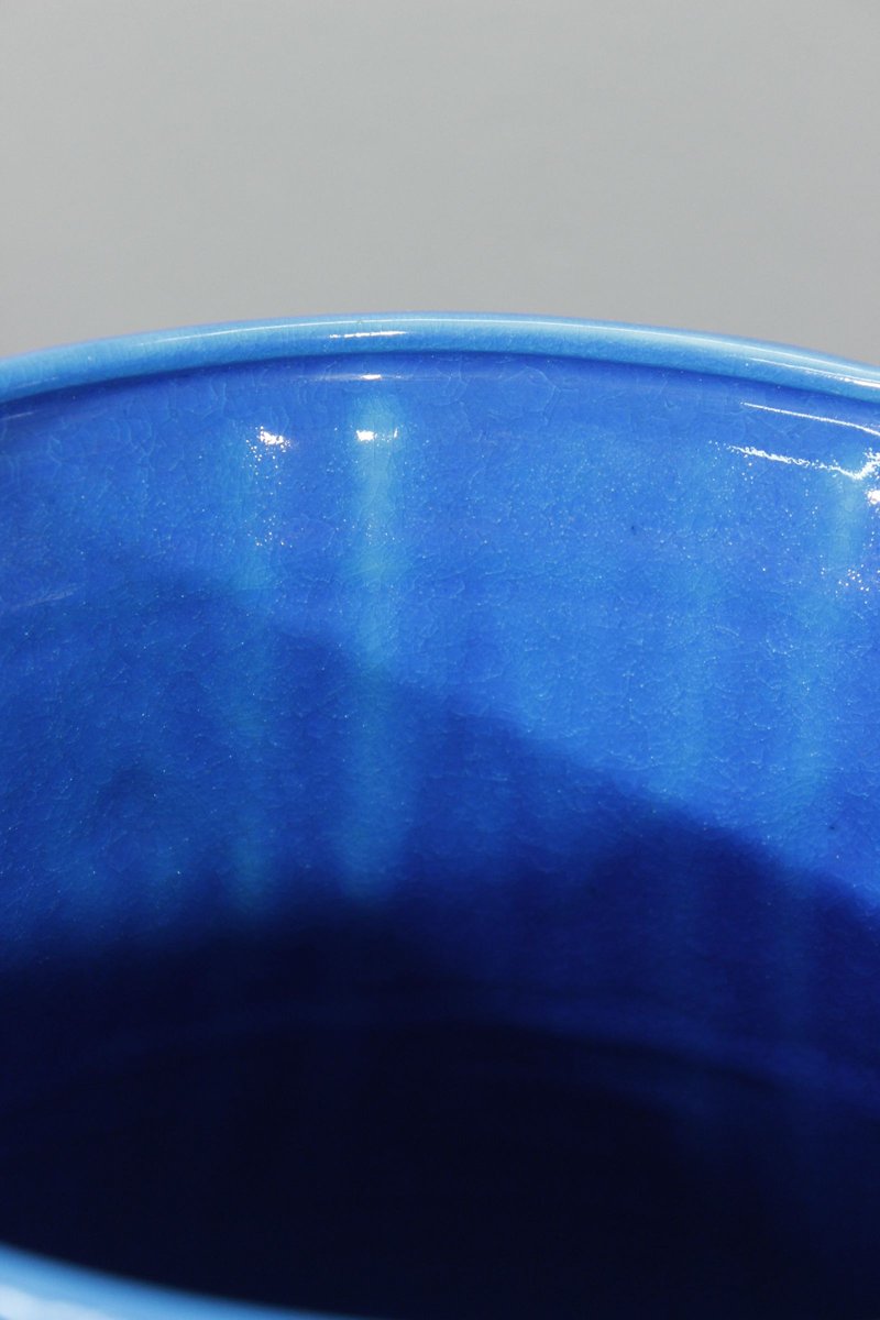 This particular model is made of a deep turquoise blue, cast after an antique Chinese bronze.