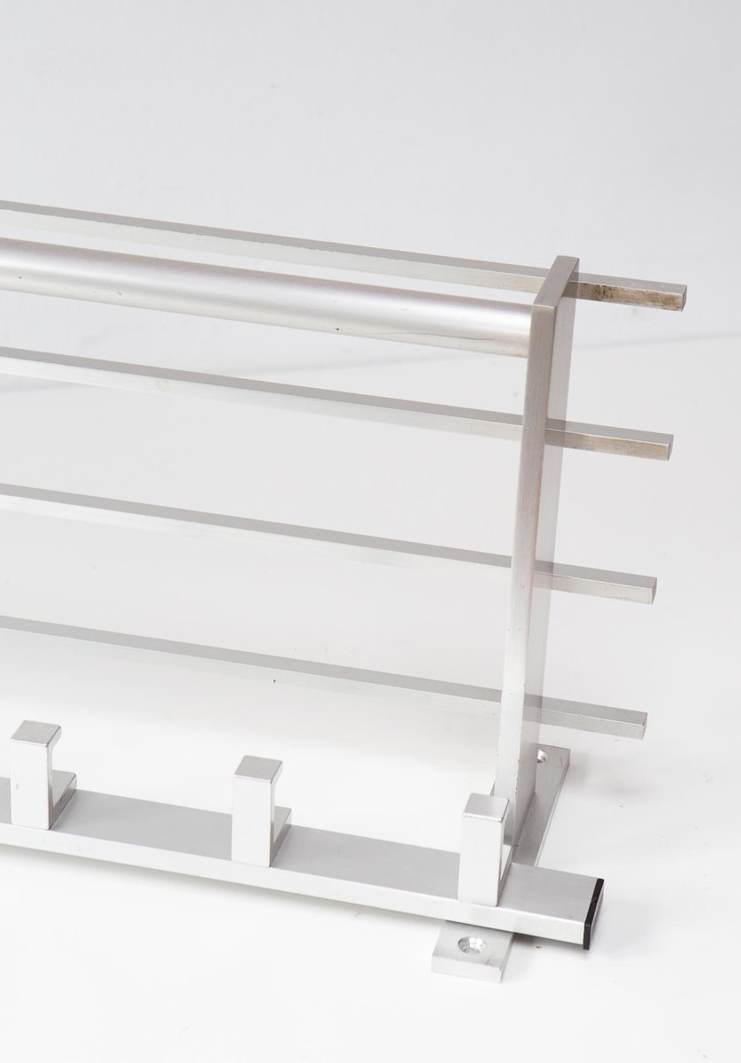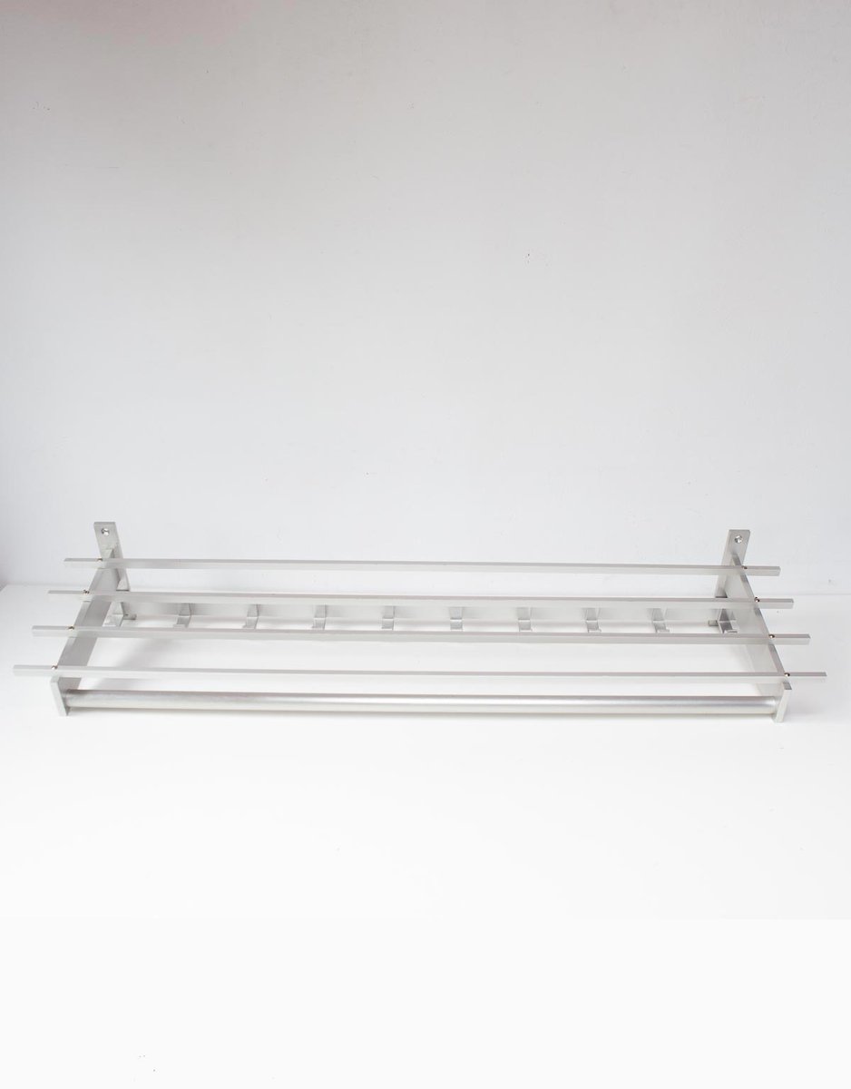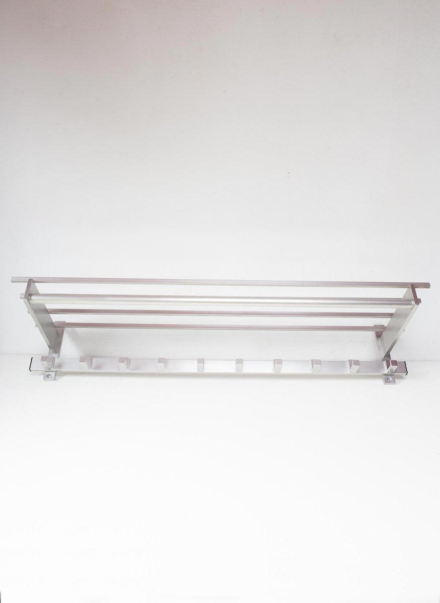 Große Wandgarderobe aus Aluminium mit Ablage, 1980er