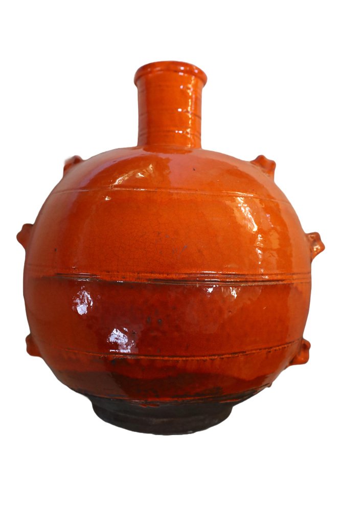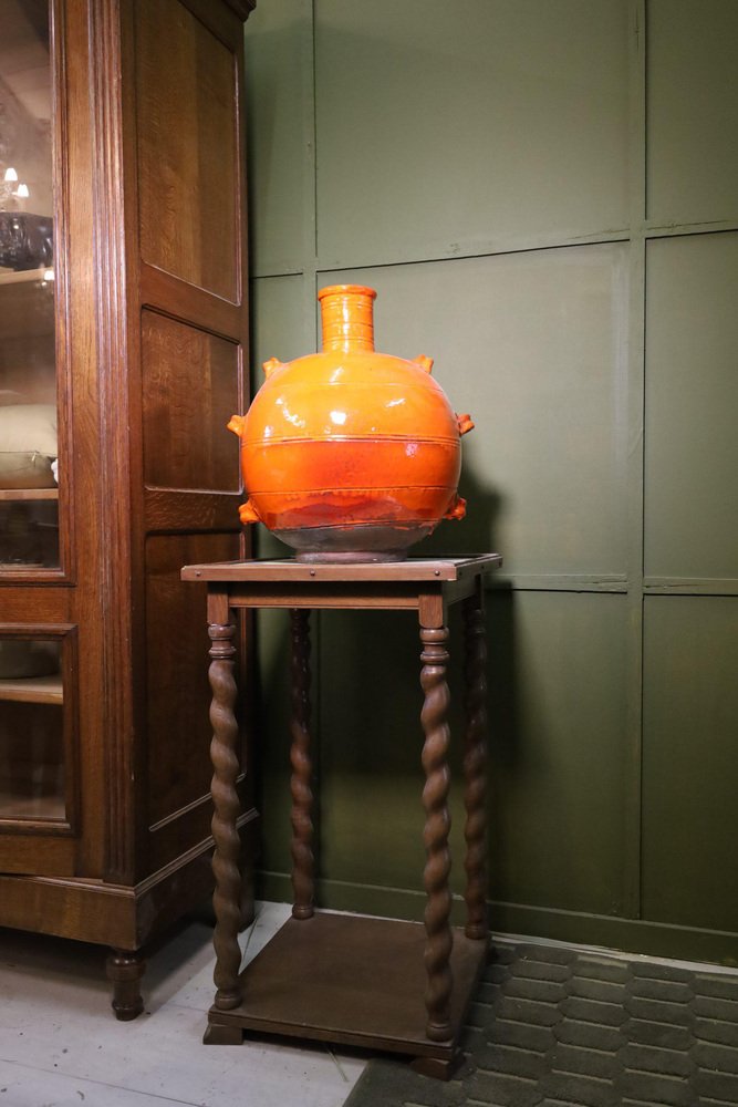 Breite - Höhe - Tiefe - Zustand - Abmessungen: Höhe 45cm. Durchmesser 42cm. Großer orangefarbener, antiker portugiesischer Tontopf Dieser große, orangefarbene, antike portugiesische Tontopf aus dem 19. Jahrhundert ist ein beeindruckendes Beispiel für traditionelle portugiesische Handwerkskunst. Mit einer Höhe von 45 cm und einem Durchmesser von 42 cm besticht dieser Tontopf durch seine leuchtende Farbe und seine handwerkliche Qualität. Das antike Finish und die authentische Patina verleihen ihm einen unverwechselbaren historischen Charme, der jedes Ambiente aufwertet. Dieser Tontopf ist nicht nur ein dekoratives Highlight, sondern auch ein Zeugnis für die reiche Kultur und Geschichte Portugals. Dekoratives Highlight: Großer oranger Tontopf Der große, orangefarbene, antike portugiesische Tontopf aus dem 19. Jahrhundert ist ideal für Sammler und Liebhaber antiker Stücke. Jahrhundert ist ideal für Sammler und Liebhaber antiker Stücke. Seine auffallende Größe und die leuchtende Farbe machen ihn zum perfekten Blickfang in jedem Raum. Ob als dekoratives Element im Garten, auf der Terrasse oder im Wohnzimmer, dieser antike Tontopf bringt einen Hauch von portugiesischer Geschichte und Handwerkskunst in Ihr Zuhause. Ein unverzichtbares Stück für jeden, der historische Dekorationen schätzt und seinem Interieur eine besondere Note verleihen möchte.