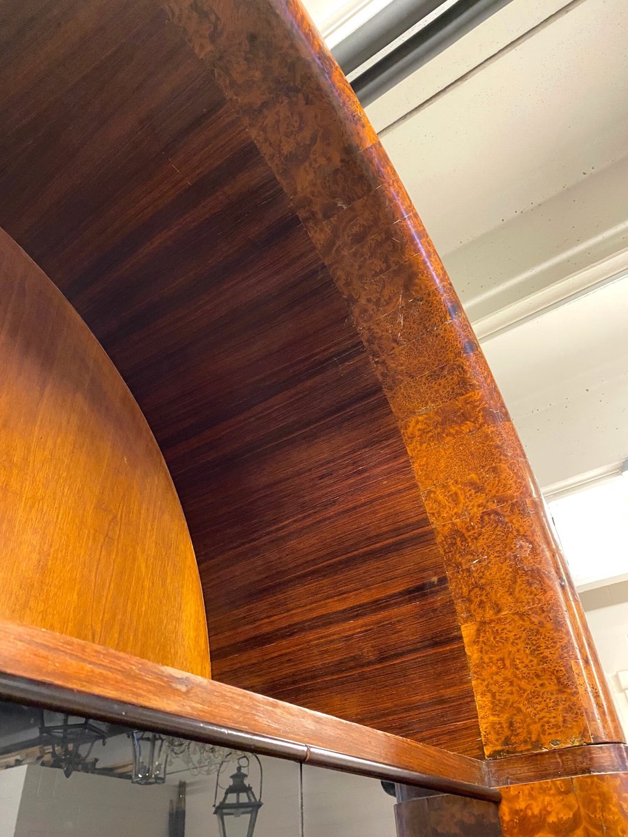 Large Italian furniture Deco ', born as a document holder and paper, the bottom of the drawers was in fact deliberately built with cracks. The furniture is composed of a high niche part, a central part with drawers and a low one with three compartments. Each drawer has a black opal glass front that hides the handle to open it. The furniture is built with different woods, beech, rosewood, walnut, briar and poplar interior.