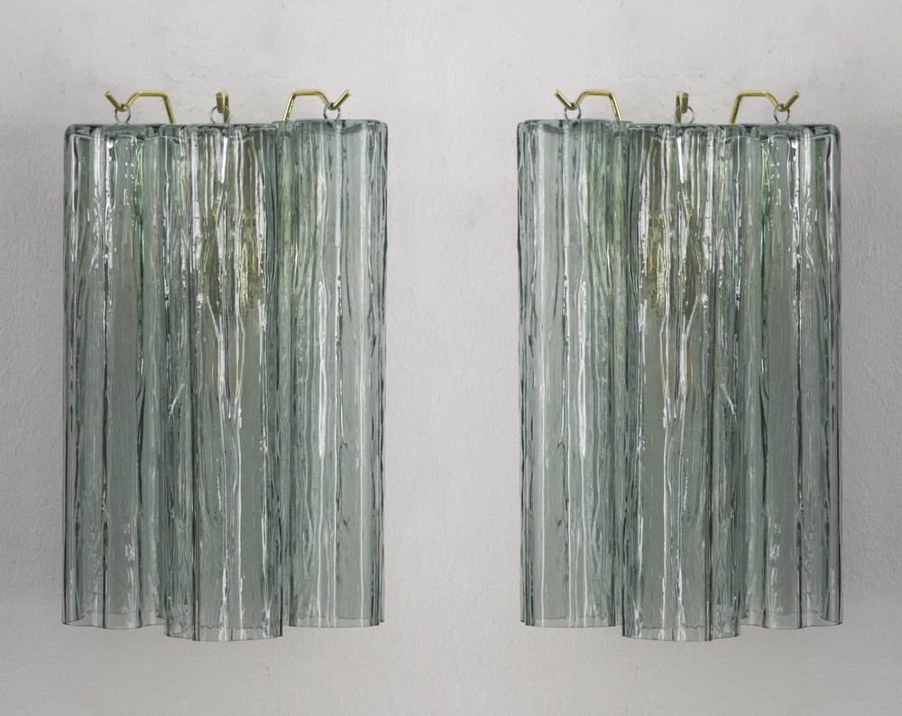 Grüne italienische Wandlampen aus Muranoglas, 1990er, 2er Set