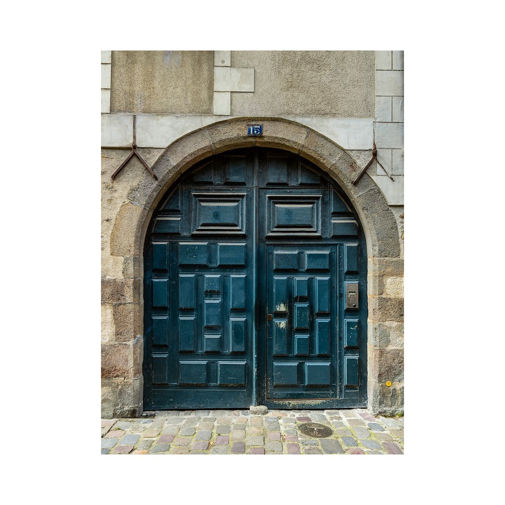 Historic European architecture often reveals its character at street level through tall, double doors - sometimes ornate, sometimes striking in their simplicity. Their design and colour often act as a subtle code, hinting at the building’s purpose or prestige. Nowhere is this tradition more alive than in France, where the variety and artistry of such doors is remarkable. This example, painted in a deep blue, is classic and understated, carrying an elegant presence that perfectly complements the architecture it serves.