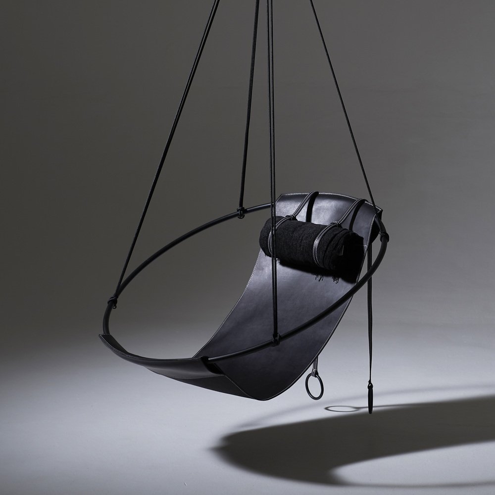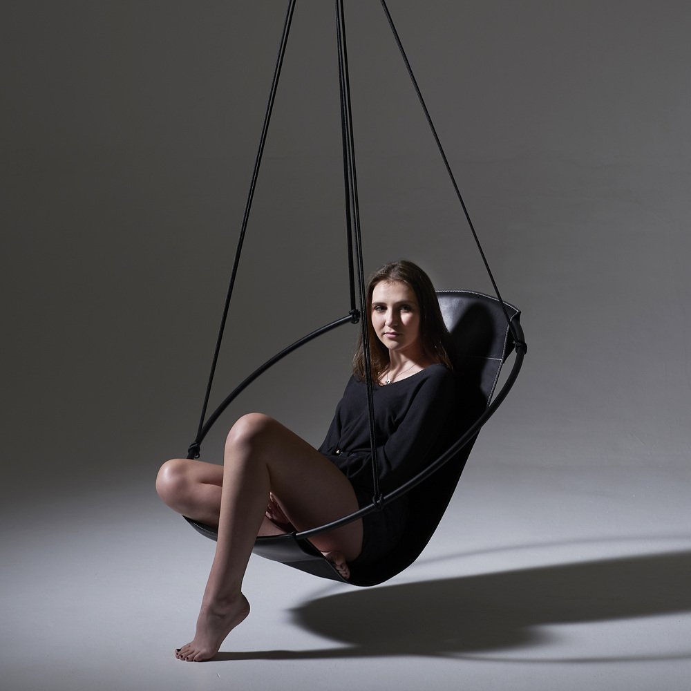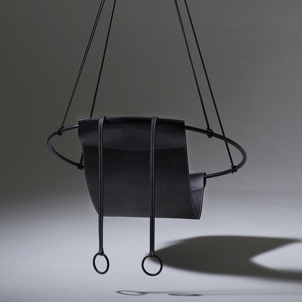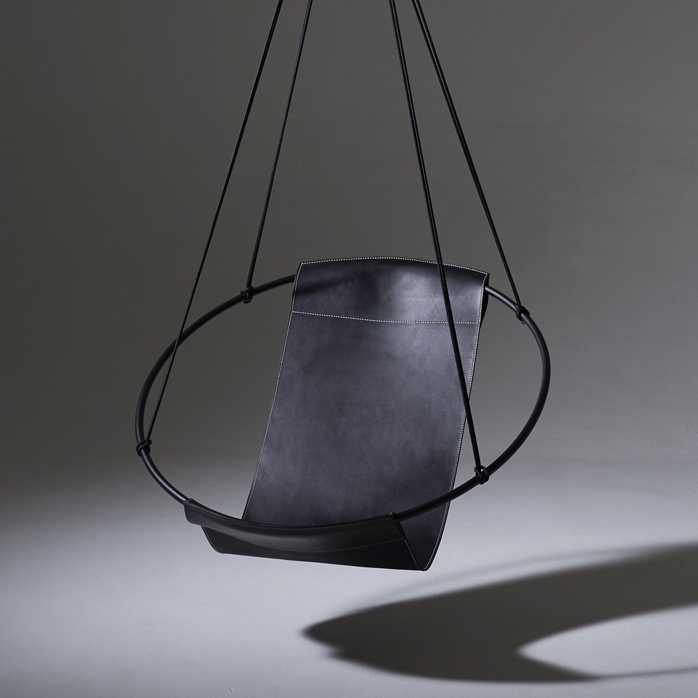 Stripped away from all excess, this hanging chair has a circular frame with the seat made of leather hanging loose within it, to create a sleek, sexy, and oh so comfortable experience. This chair’s clean lines and lightness makes it a perfect fit for any space.