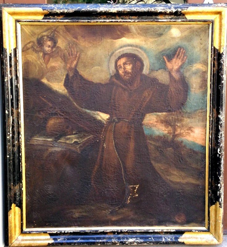 Heiliger Franziskus in Ekstase, Frühes 17. Jh., Gemälde auf Leinwand, Gerahmt