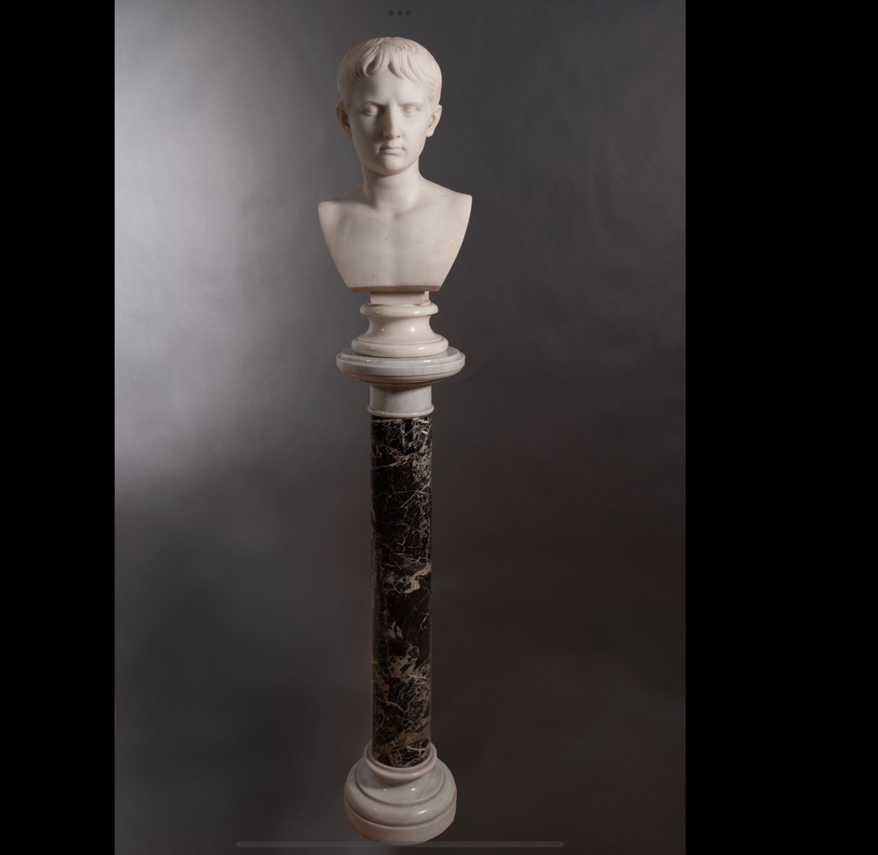 Italienische Empire Marmorsäule in Schwarz-Weiß