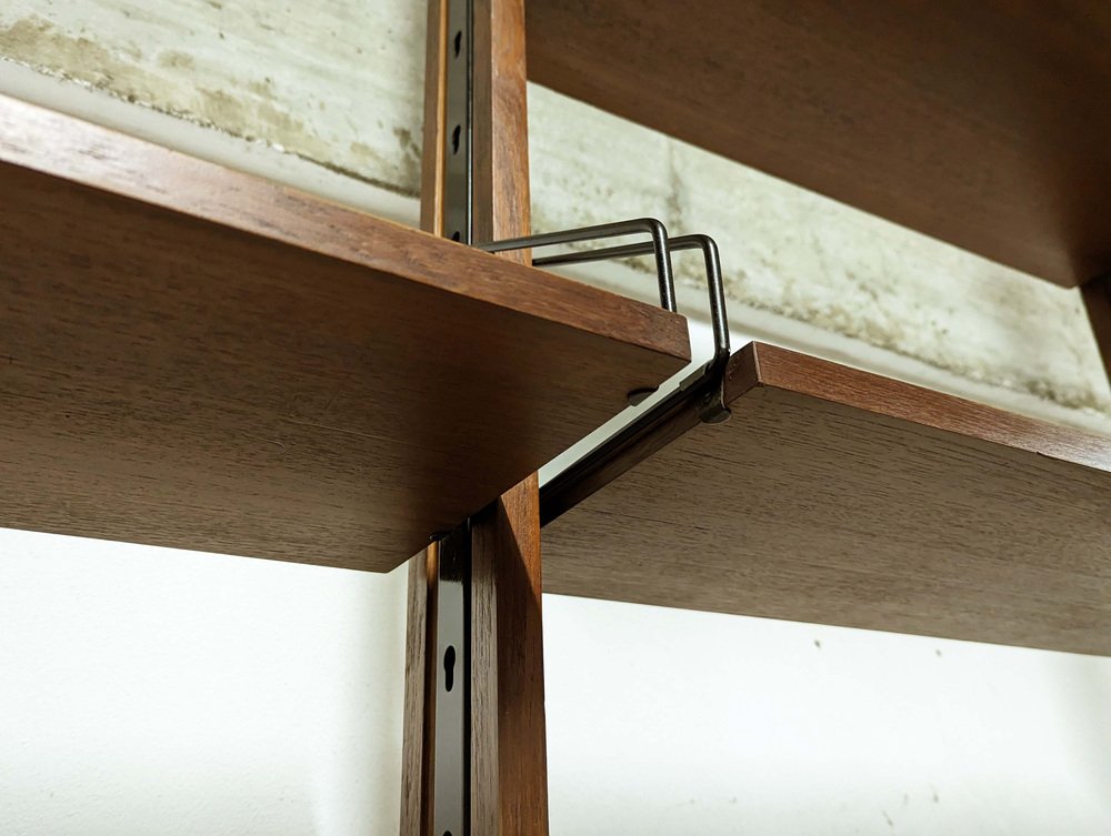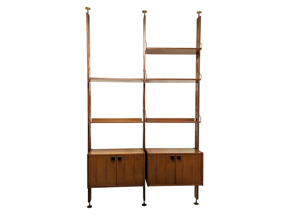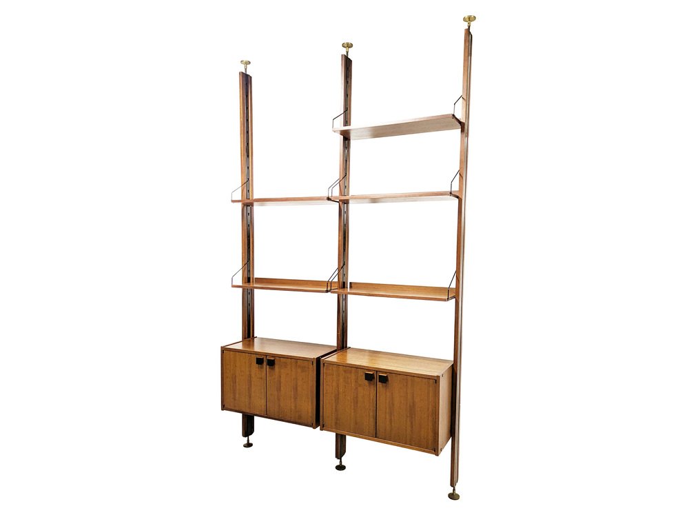 Dieses Bücherregal wurde in den 1960er Jahren in Italien von SELEX hergestellt. Dank seiner verstellbaren Höhe (278 - 284,5 /285 cm max) kann es an einer Wand oder irgendwo in einem Raum als Raumteiler aufgestellt werden.