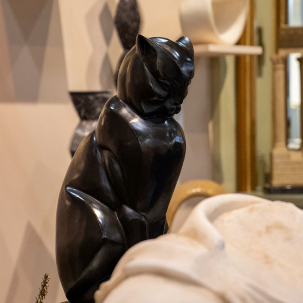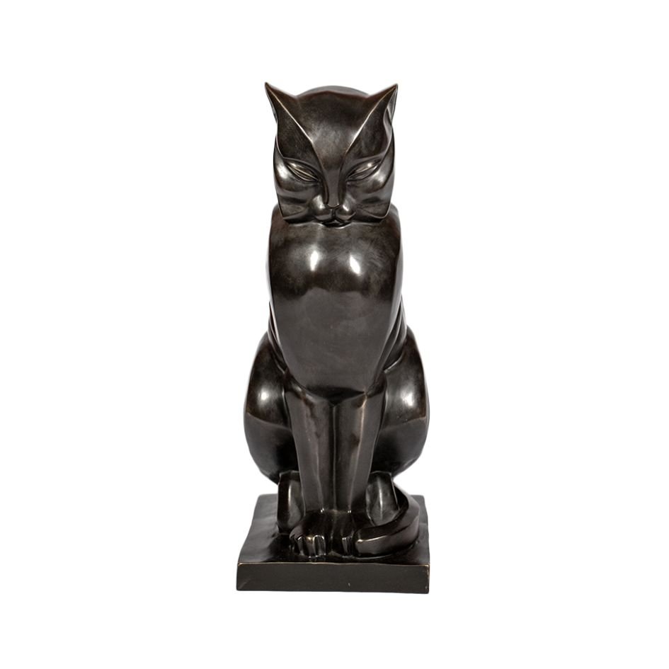 This hand-cast bronze cat is a contemporary homage to the streamlined animal sculptures of the French Art Deco era. Its calm, seated pose is inspired by Jan & Joël Martel’s celebrated Chat assis (c. 1925), whose refined geometry and serene presence helped define interwar modernism in Paris.