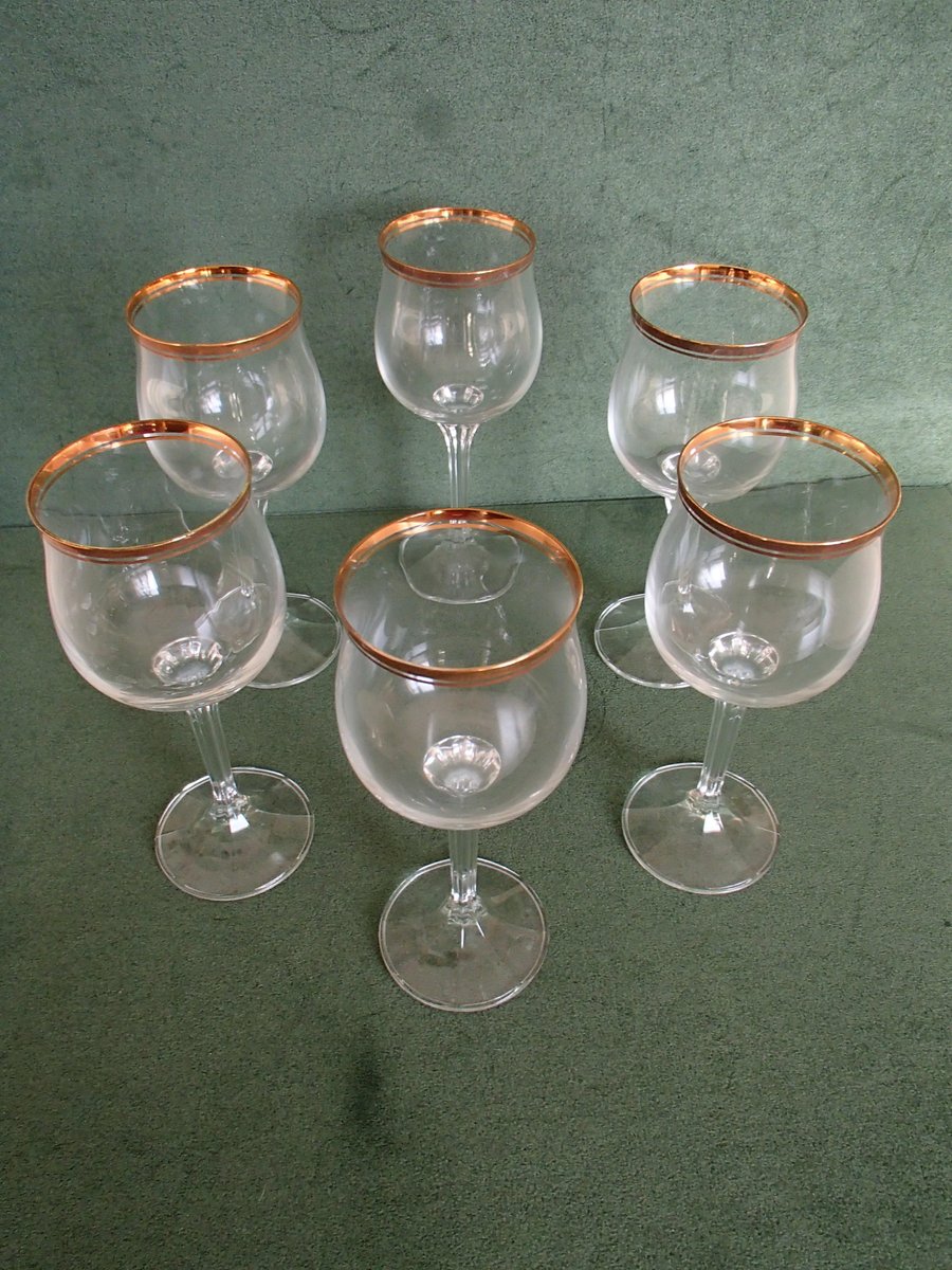 Kristallglas Weingläser mit Goldrand, 1960er, 6er Set