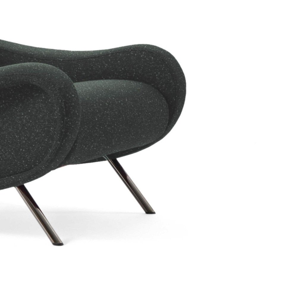 Marco Zanuso Lady Armchair For Cassina Icon of Italian design in the 1950s and symbol of the utmost stylistic, material and technological innovation, the Lady armchair by Marco Zanuso made history with its breathtakingly modern build. The Cassina re-edition heightens the beauty of Lady with contemporary allure, making it the ideal piece to enhance lounges, lobbies and executive offices. UPHOLSTERY Fabric or leather. PADDING Cold processed polyurethane foam. Flexible polyurethane foam. Resin treated polyester fiber batting laminated to fabric lining. BASE Frame in tubular steel in basalt, brass or gunmetal chrome colors. Icon of Italian design in the 1950s and symbol of the utmost stylistic, material and technological innovation, the Lady armchair by Marco Zanuso made history with its breathtakingly modern construction. Aside from being the first armchair upholstered in polyurethane foam, the chair also ushered in a form of suspension provided by reinforced elastic webbing for improved comfort, while the metal legs highlight the airy lightness of the shapes. All of the structural elements are seamlessly integrated into the whole ‒ made up of seat, backrest and armrests ‒ making this model a made in Italy masterpiece, awarded the Medaglia d’Oro at the IX Triennale di Milano in 1951. The Cassina re-edition heightens the beauty of Lady with contemporary allure, making it the ideal piece to enhance lounges, lobbies and executive offices. Available in a splendid selection of fabrics or in leather. Certification: BIFMA.