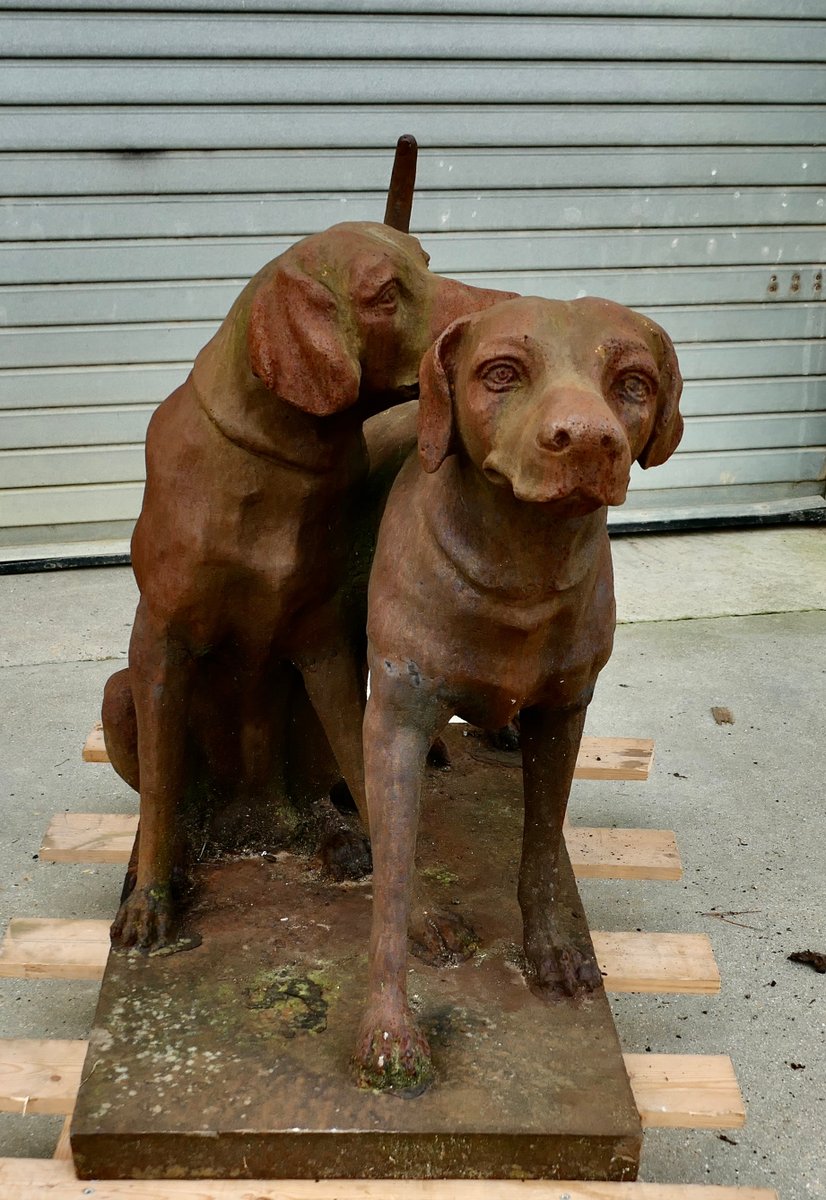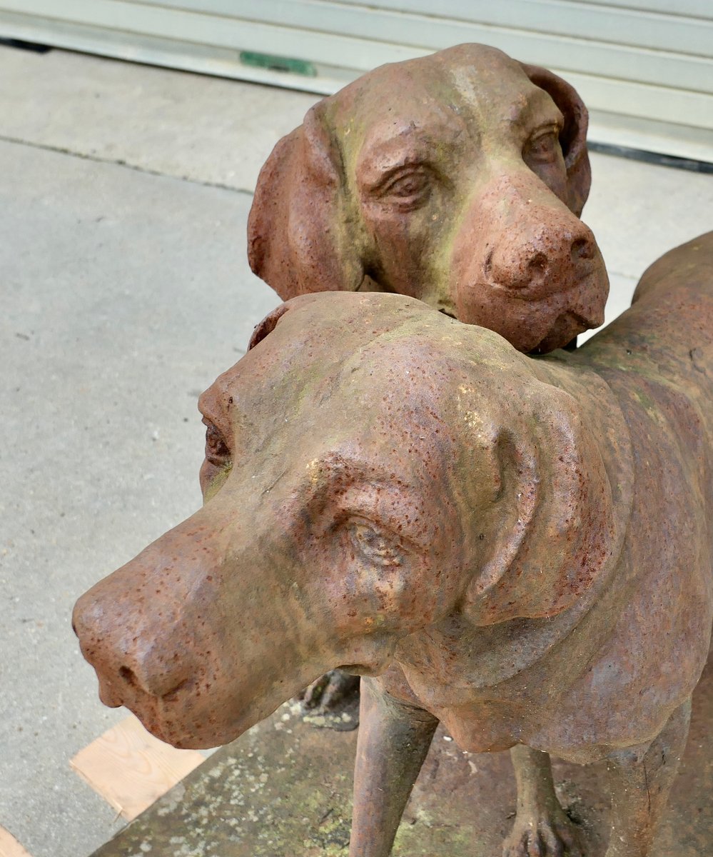 Lebensgroße verwitterte Labrador Statuen aus Gusseisen auf Sockeln, 1960er, 2er Set