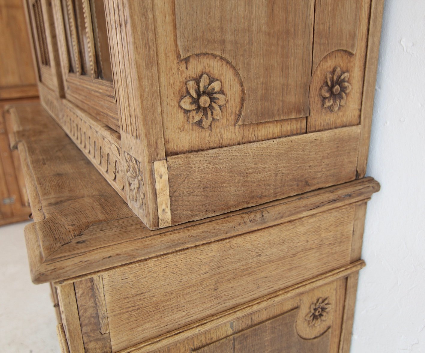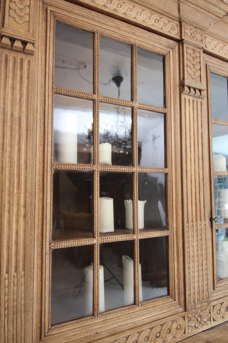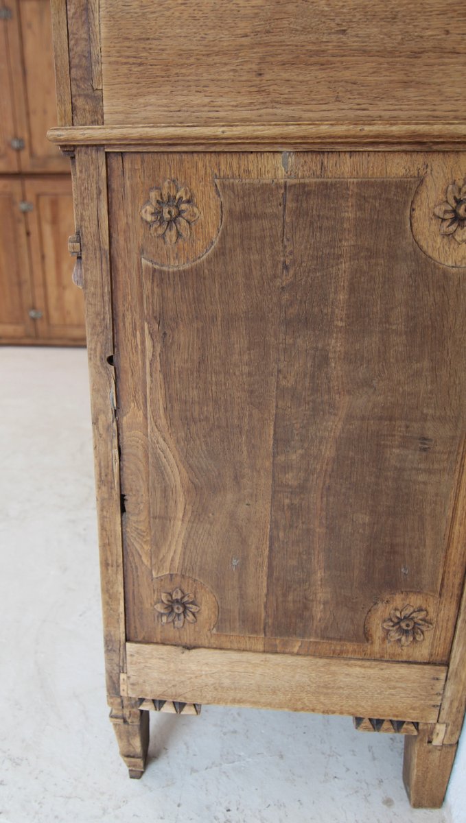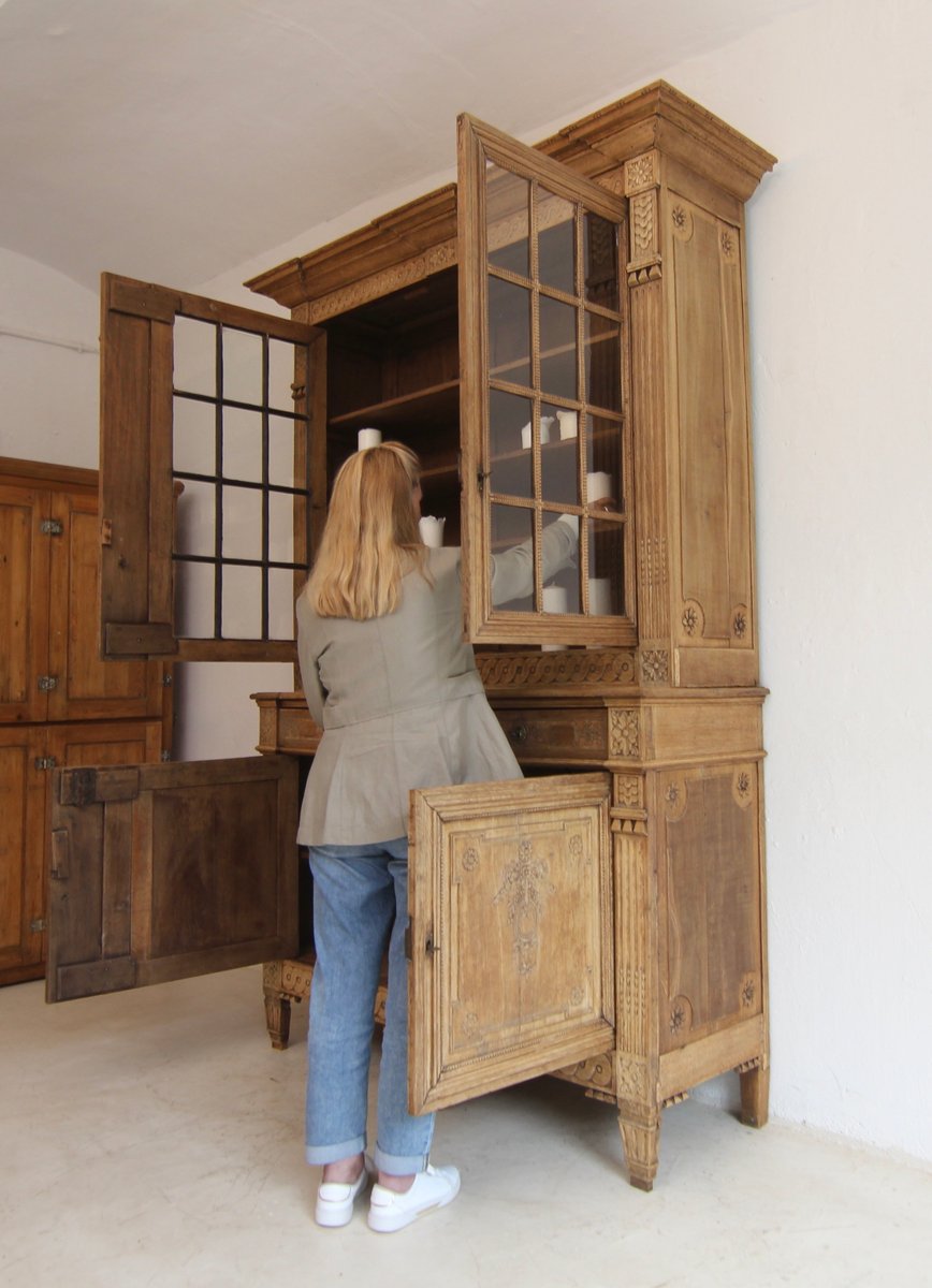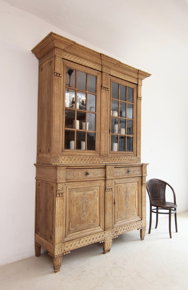 Provincial classicist Louis XVI display cabinet or buffet à deux corps from the late 18th century. Solidly crafted in oak. Ready to use with a bleached surface.
