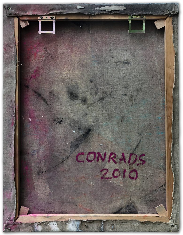 Utilizing a variety of media, from acrylics to oil, spray color, pigment, shellac, bitumen, and pastel, Conrads’s process is the materialization of painting. His process of art-making constructed to analyze how painting works. The parameters of a painting contain many contradictions: light and dark, dense and loose, quickly drawn and elaborately articulated, dynamic and static, colorful and monochromatic. Conrads believes all of these actions are valid. It is the utilization and implementation that create perfect compositional balance.