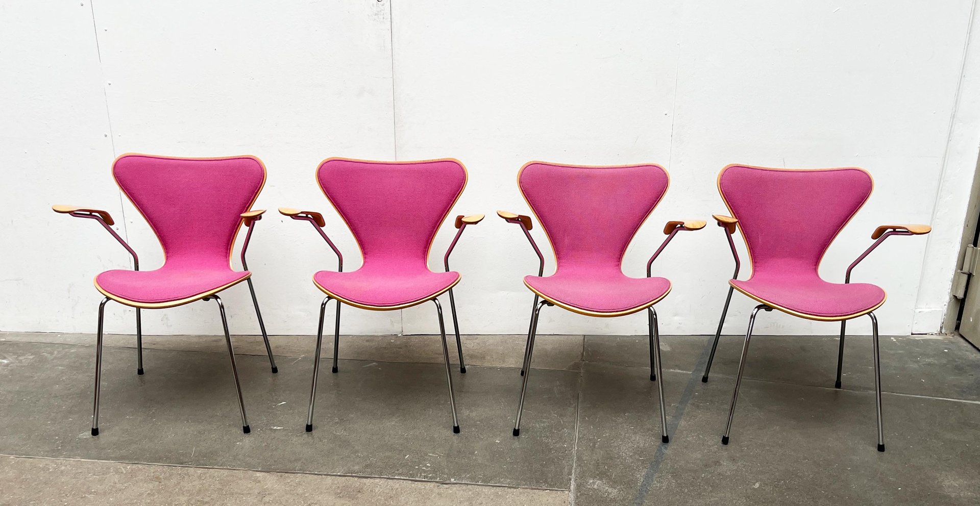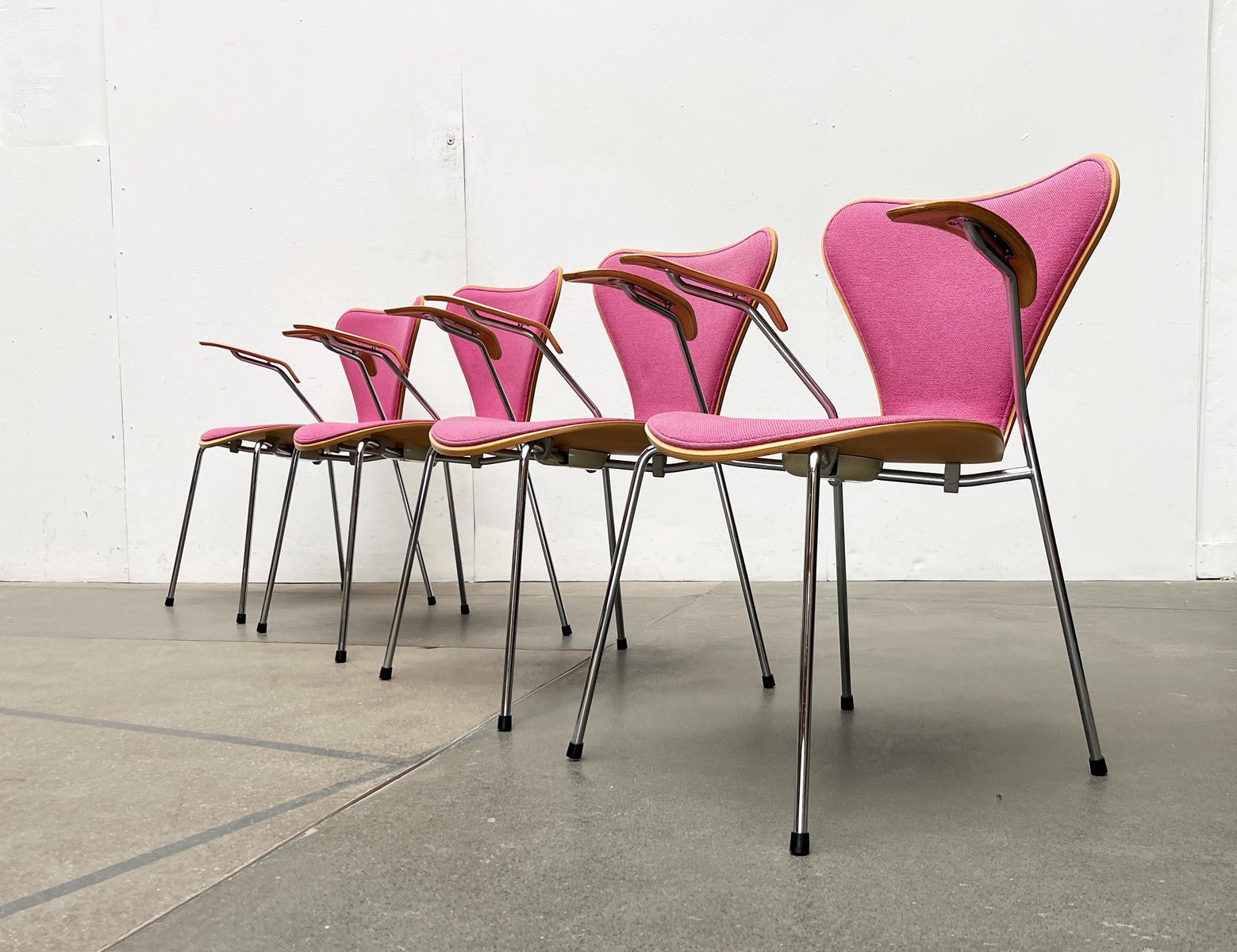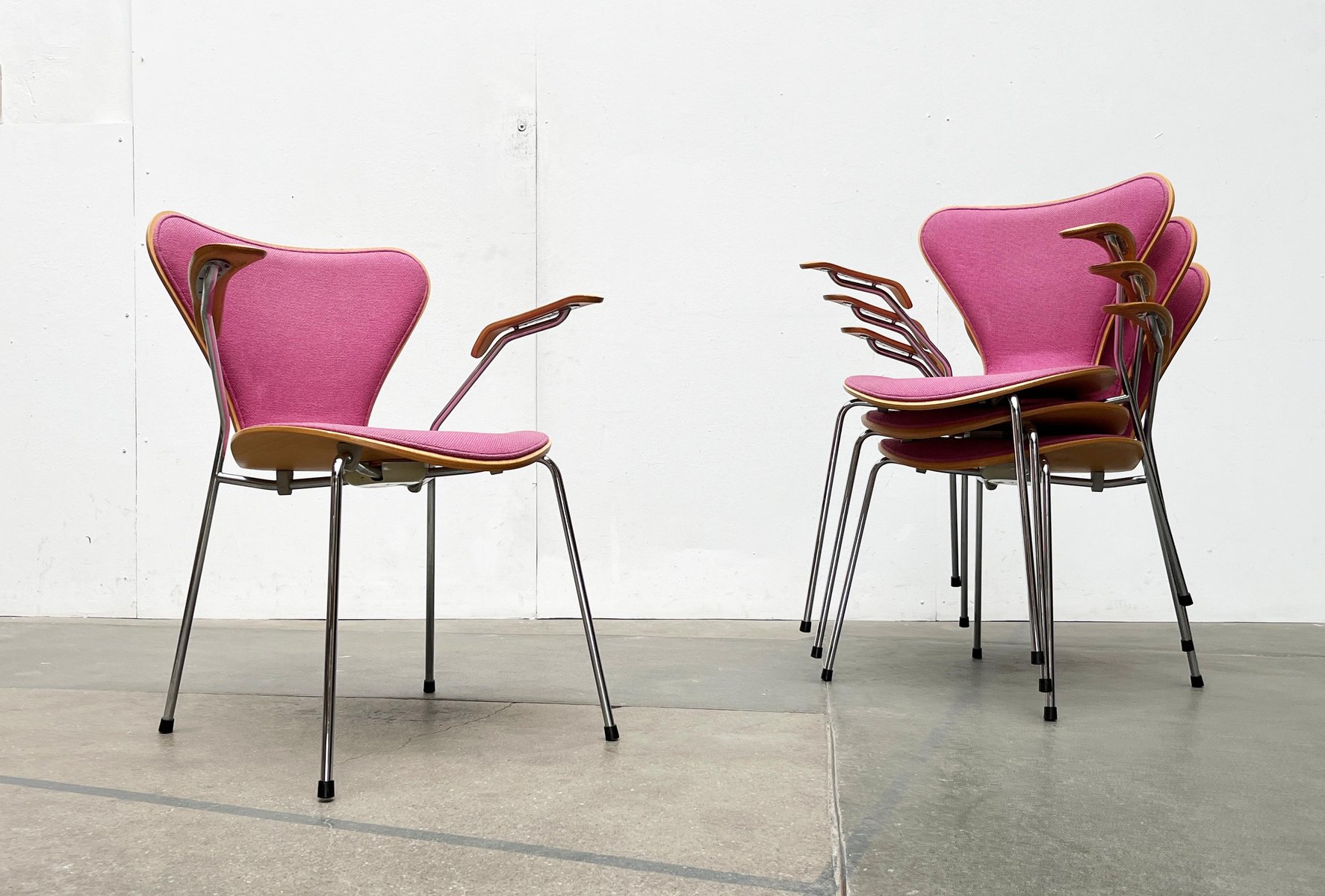 Modell 3107 Armlehnstühle Stapelstühle von Arne Jacobsen für Fritz Hansen, Dänemark, 1990, 4 . Set