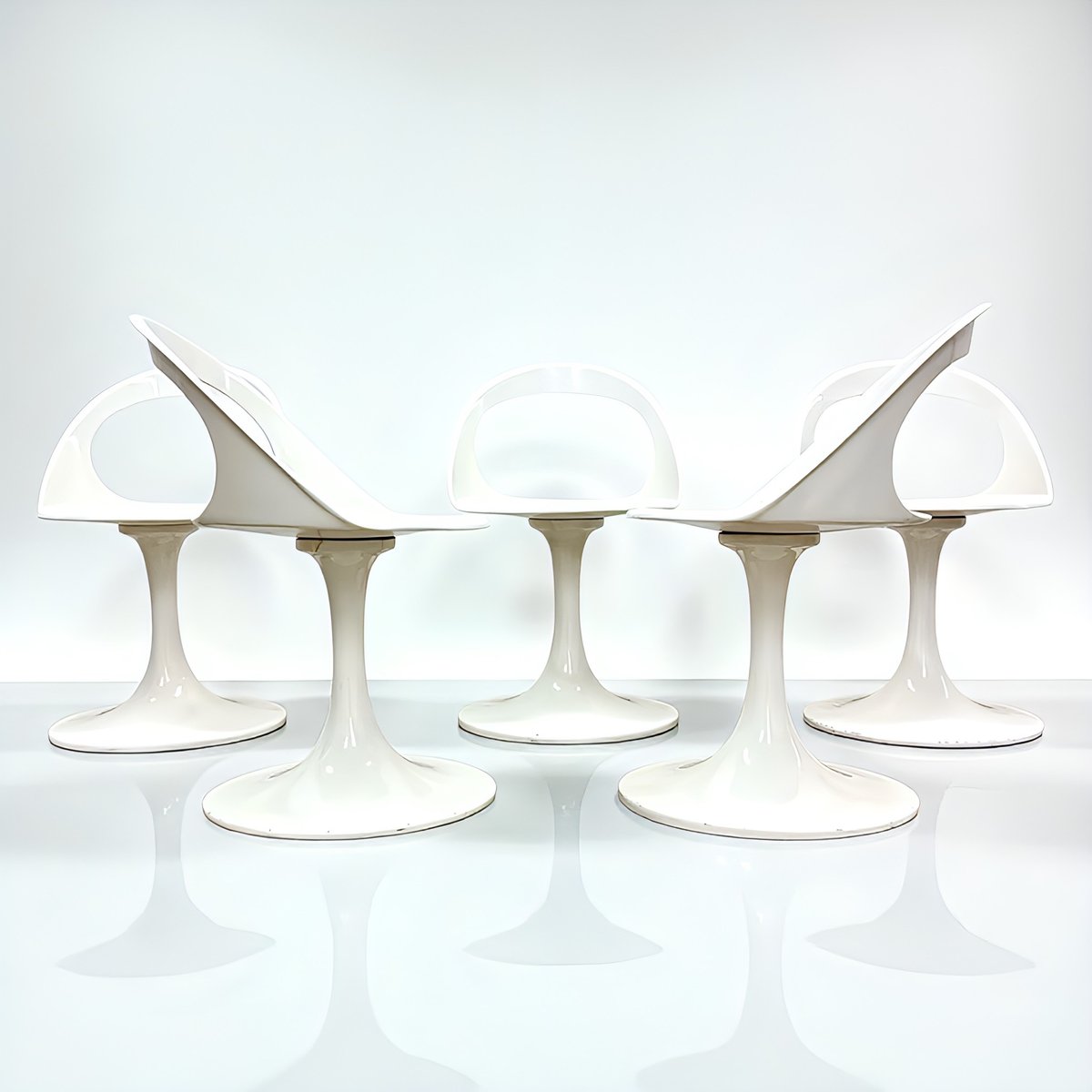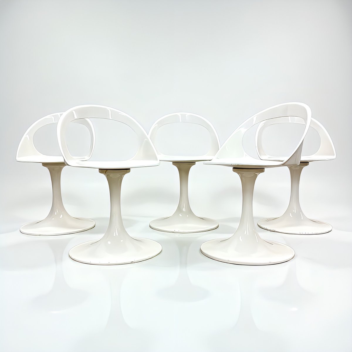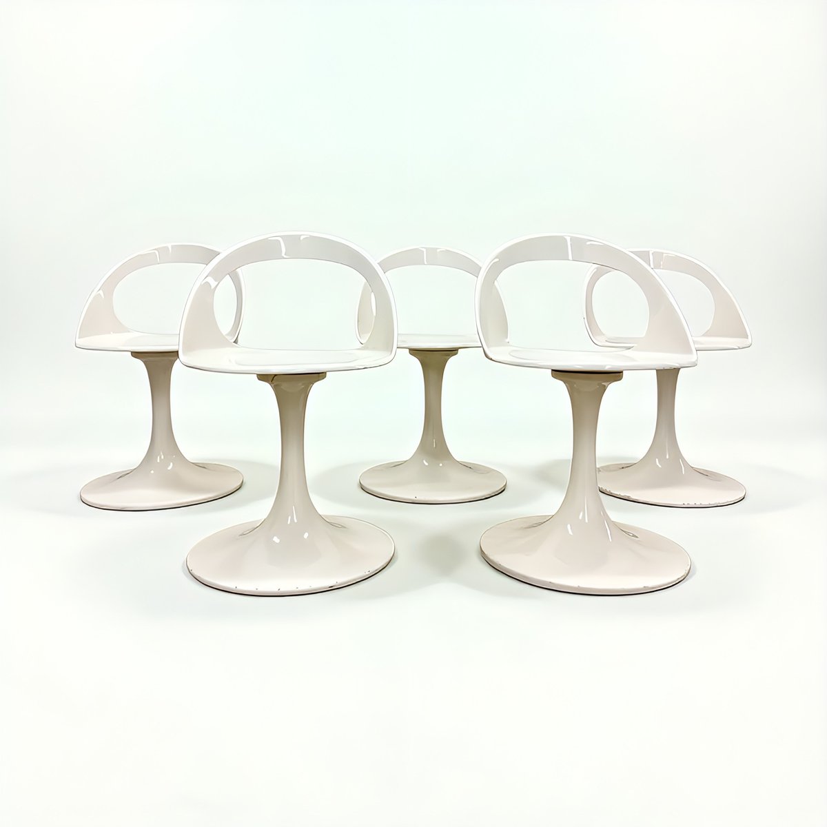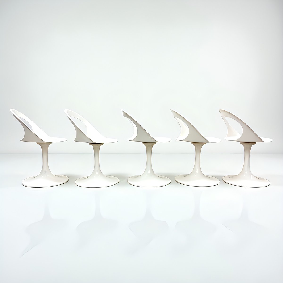 Moderne italienische Tulip Drehstühle aus Fiberglas, 1960er, 5 . Set