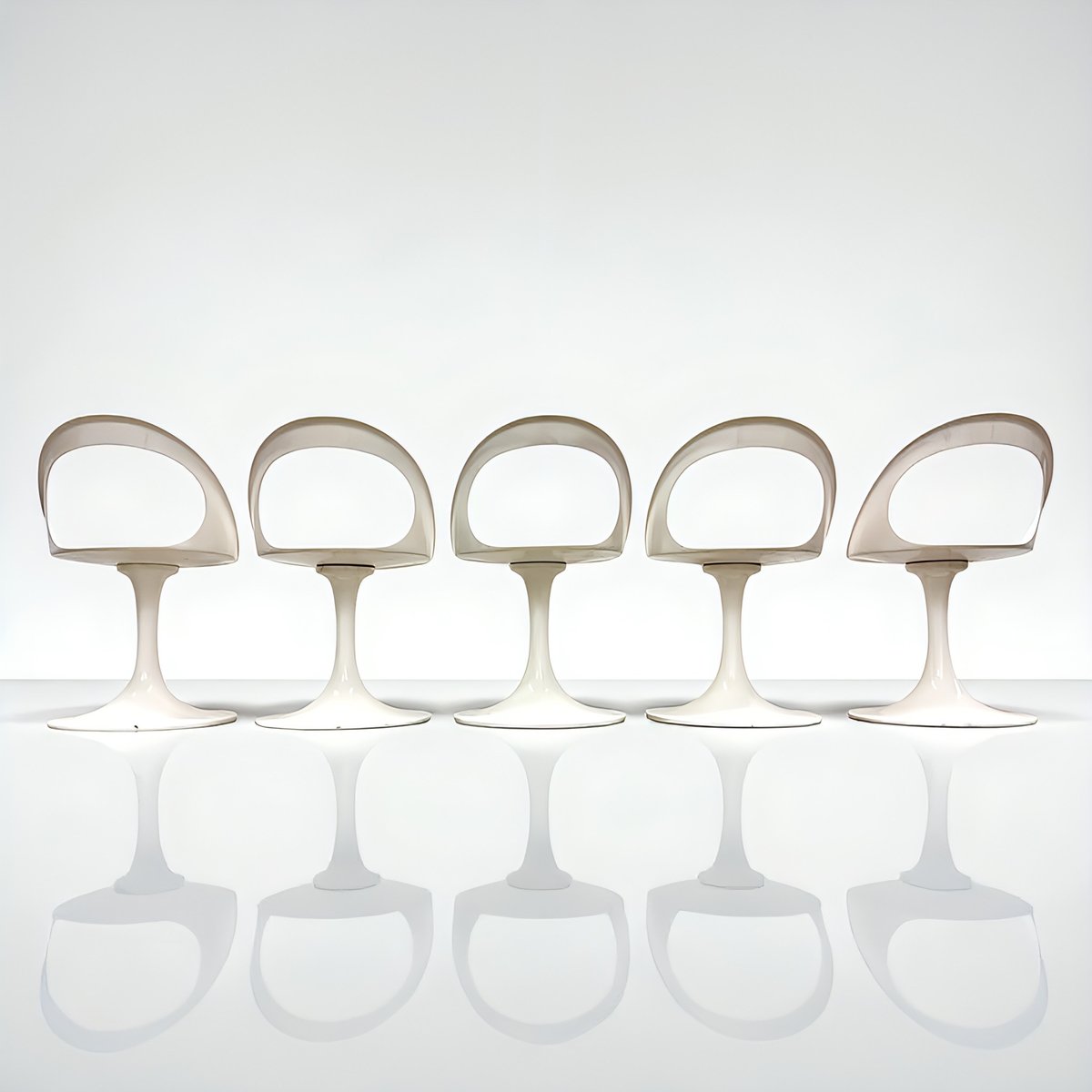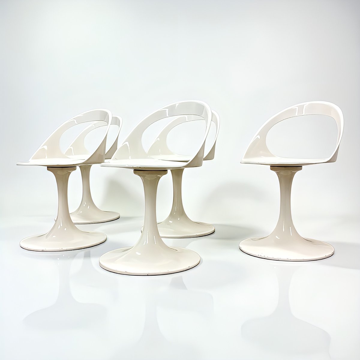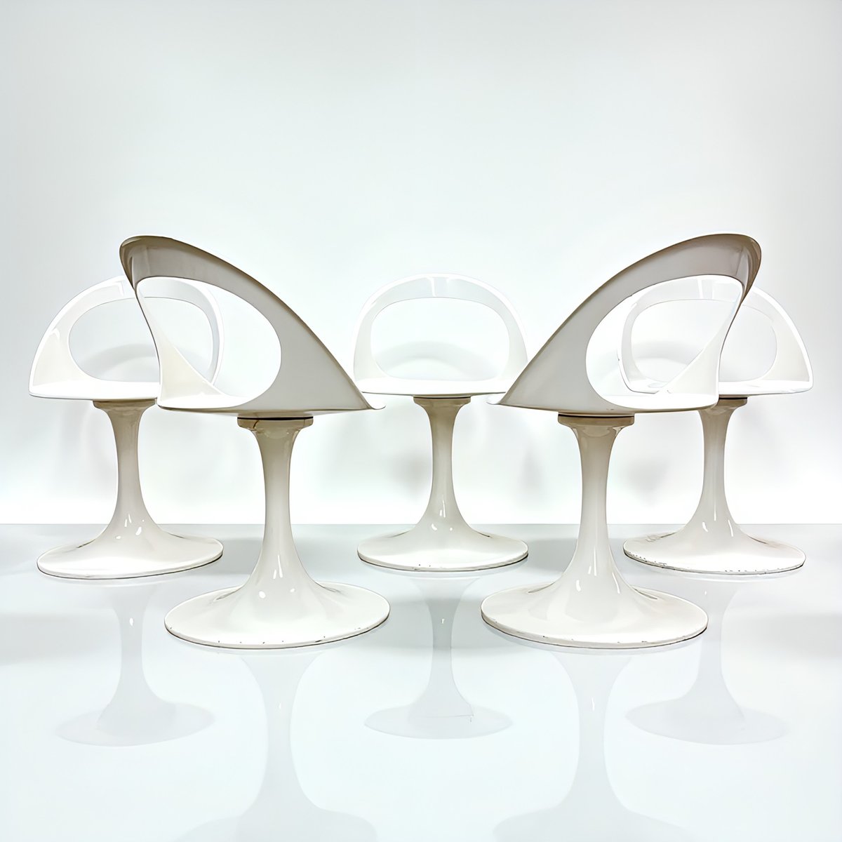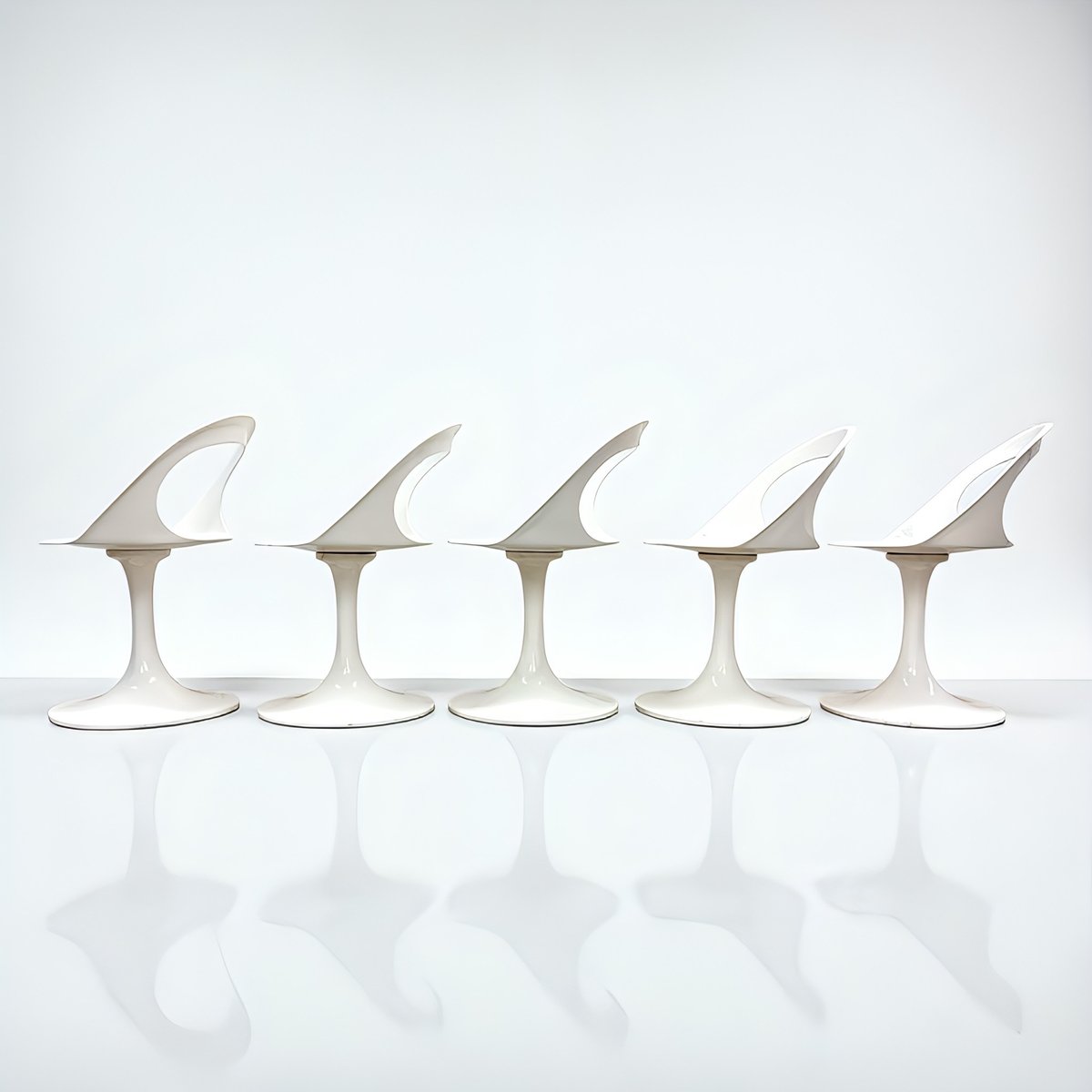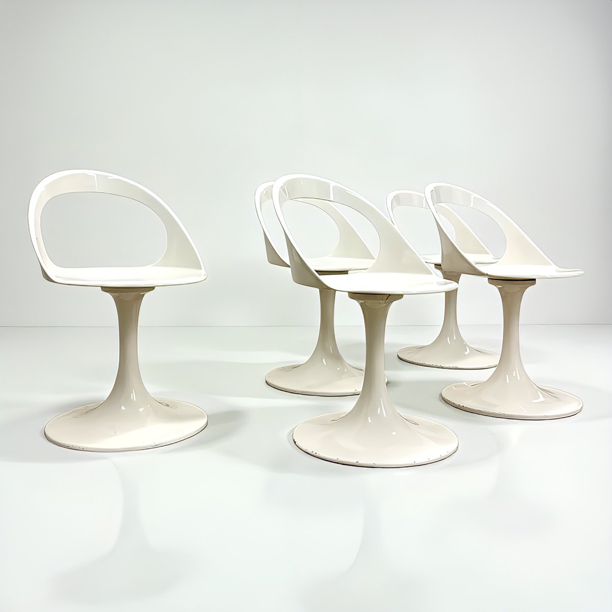 Moderne italienische Tulip Drehstühle aus Fiberglas, 1960er, 5 . Set