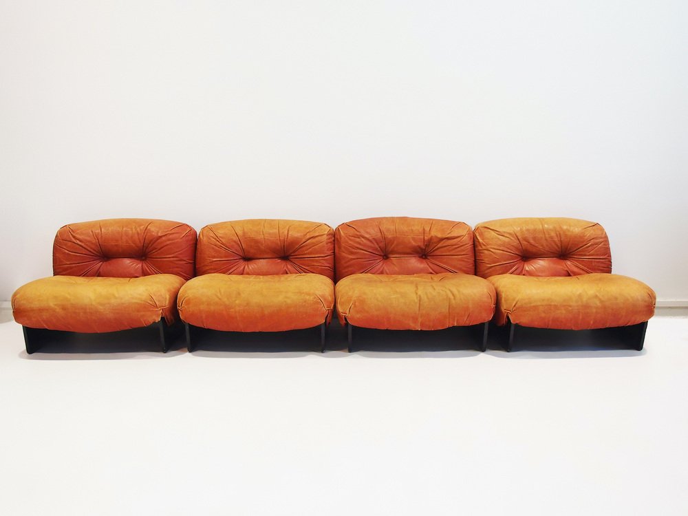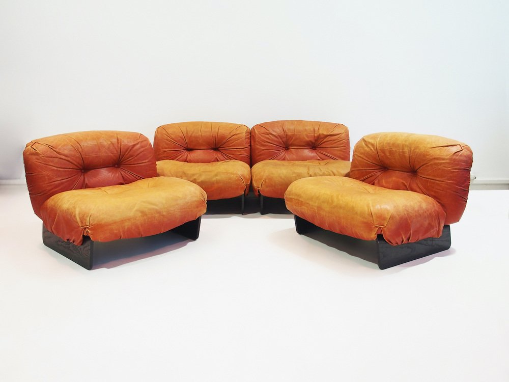 Modulare Sessel mit Bezug aus Cognacfarbenem Leder von Giuseppe Munari, 1970er, 4er Set