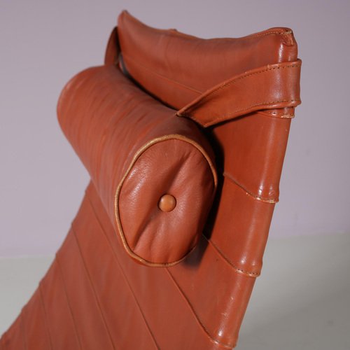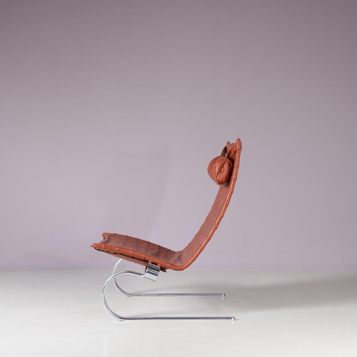 A beautiful PK20 highback lounge chair, designed by Poul Kjaerholm and manufactured by E. Kold Christensen in Denmark around 1960. This very rare chair is guaranteed to draw the attention of any design enthusiast! It has a beautiful chrome-plated metal base in an elegant curved shape. The seat is upholstered in beautiful cognac leather, creating a very nice contrast with the bright material of the frame. The cylinder neck pillow is upholstered in the same material and provides extra comfort to this already very comfortable chair! The slightly backwards tilted shape and low seat all add very nicely to the seating experience. The chair has the manufacturer’s mark carved into the frame, as shown in the photos. Also included is the label of the famous auction house Bruun Rasmussen, were the previous owner purchased this piece, is still taped to the frame! It remains in very good, vintage condition with minor wear consistent with age and use, preserving a beautiful patina!
