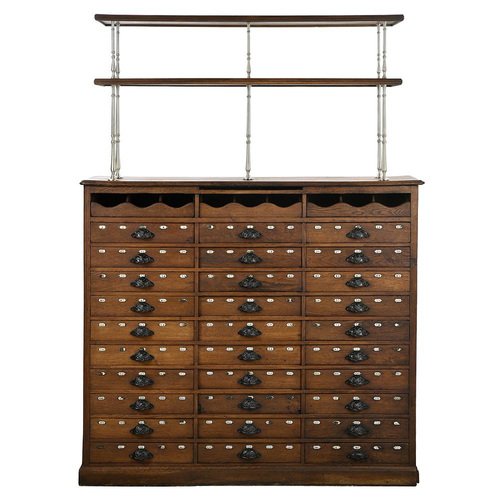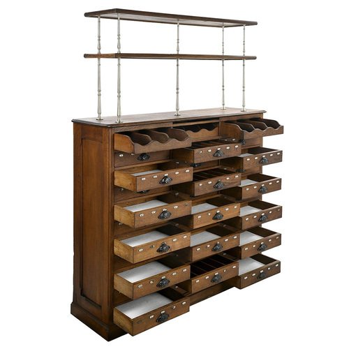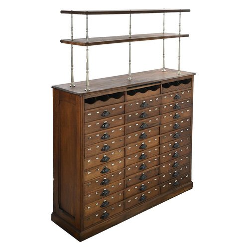 This authentic restaurant furniture is an exceptional piece that combines functionality and elegance. with its imposing dimensions of 184 cm high, 134 cm wide and 40 cm deep, this piece of furniture is ideal for bringing a touch of authenticity and organization to your establishment. Features: - Dimensions: Height - 184 cm, Width - 134 cm, Depth - 40 cm - Material: Solid wood, ensuring strength and durability - Design: Vintage style with a natural finish and elegant metal handles - Storage: Equipped with 30 spacious numbered drawers and two upper shelves for optimal storage - Use: Perfect for use in a restaurant or café Decoration and Utility This 30 drawer storage unit is perfectly suited to a restaurant or café environment. Its vintage design and quality materials make it a central piece that catches the eye and adds charm to your establishment. It can be placed behind the counter, in a service room or in a storage area. In terms of utility, this piece of furniture is extremely practical for organizing and storing various items necessary for the smooth running of a restaurant. The 30 spacious drawers are perfect for storing utensils, menus, tablecloths, napkins and other tableware. The upper shelves provide additional space for displaying decorations, wine bottles, glasses or any other decorative items