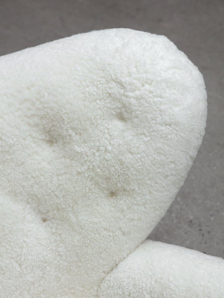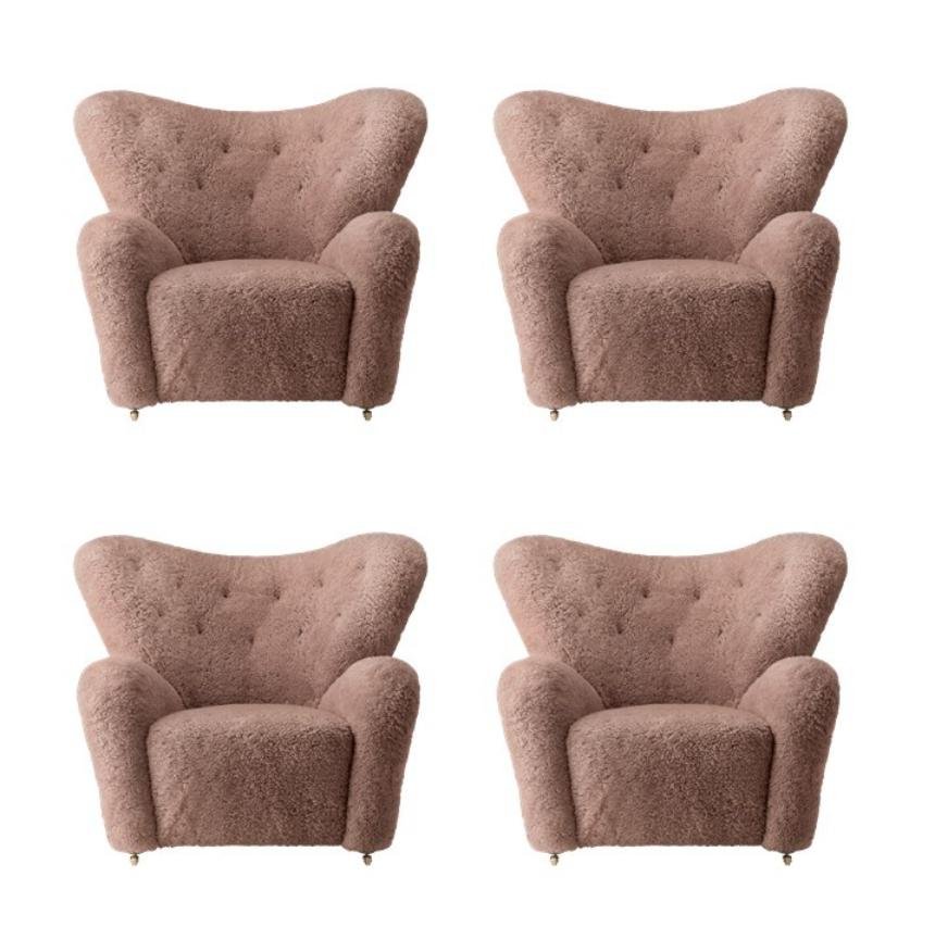 Set of 4 Sahara Sheepskin the tired man lounge chair by Lassen Dimensions: W 102 x D 87 x H 88 cm Materials: Sheepskin Flemming Lassen designed the overstuffed easy chair, The Tired Man, for The Copenhagen Cabinetmakers’ Guild Competition in 1935. It is characterised by organic, bearlike shapes and then as now it created a sensation with its curved form and voluminous armrests. Sitting in the chair should, in Flemming Lassen’s own ords, be ”as warm and safe as a polar bear cub in the arms of its mother in the middle of the ice cap”. The family man Flemming Lassen valued intimate relationships - with its warm exterior, The Tired Man invokes domestic cosiness and socialising by candlelight. By Lassen is a Danish design brand focused on iconic designs created by Mogens and Flemming Lassen, founded by Lassens’ relatives in 2008.