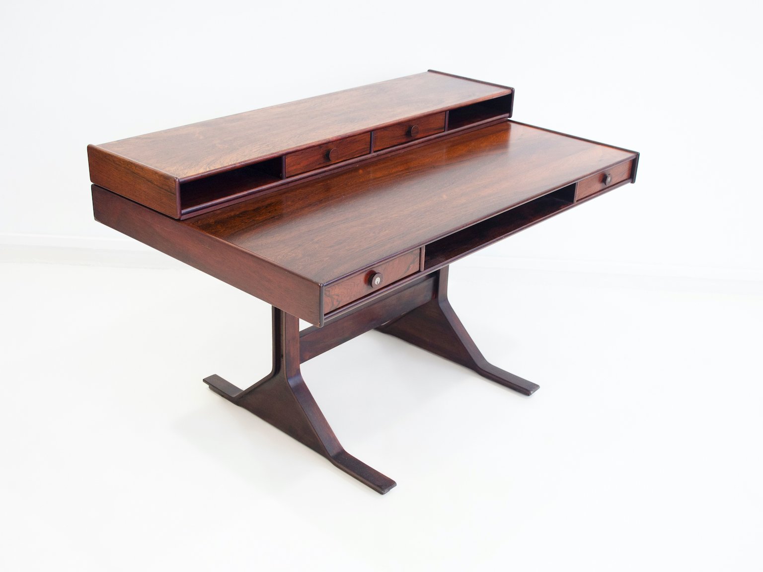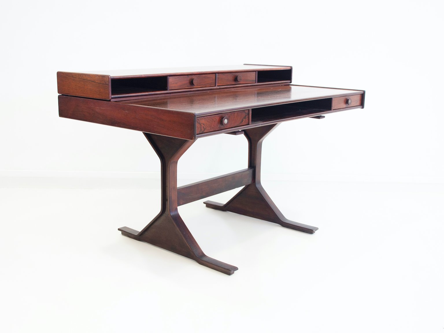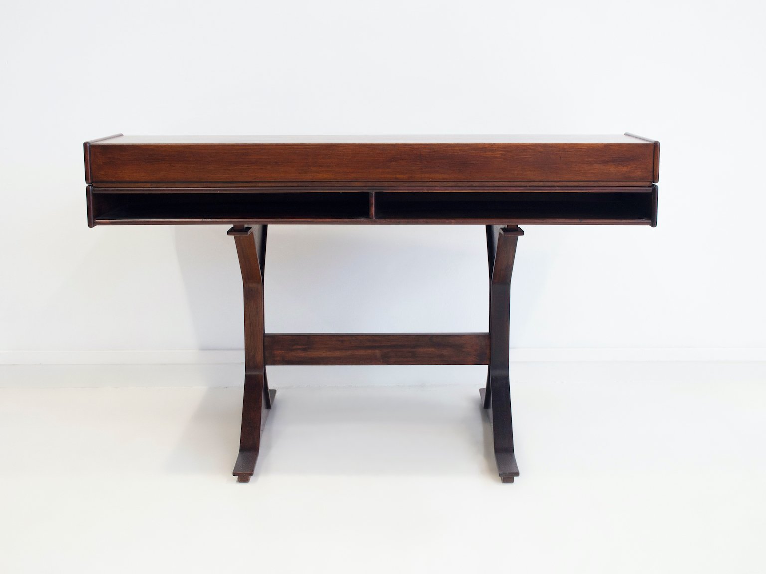 Schreibtisch aus Holz mit Staufächern von Gianfranco Frattini für Bernini, 1950er