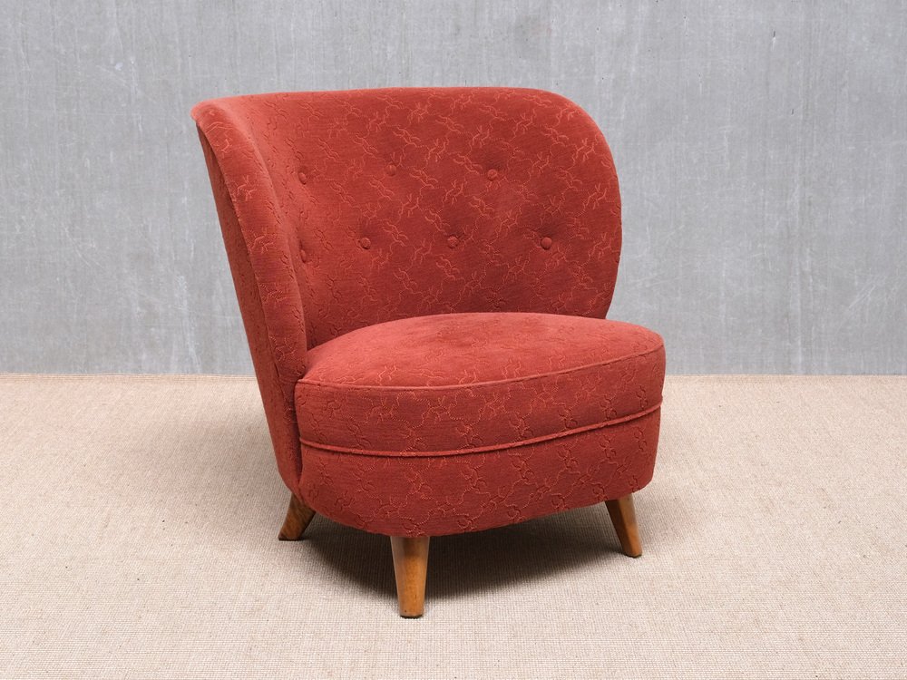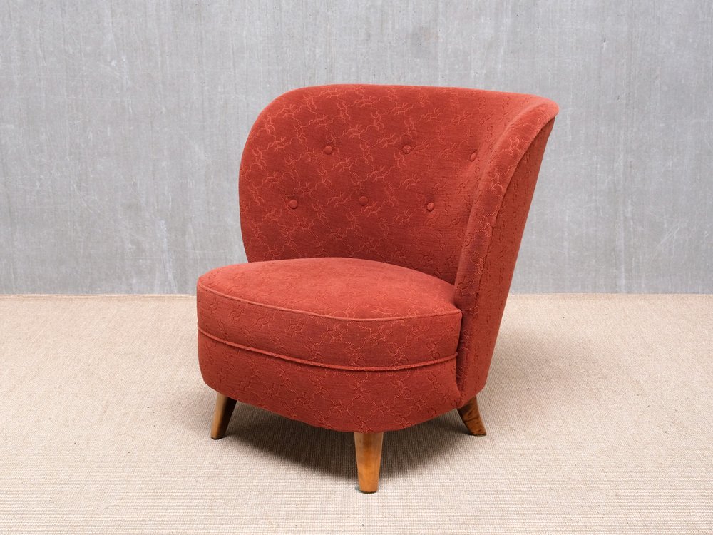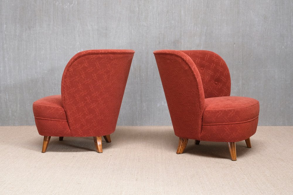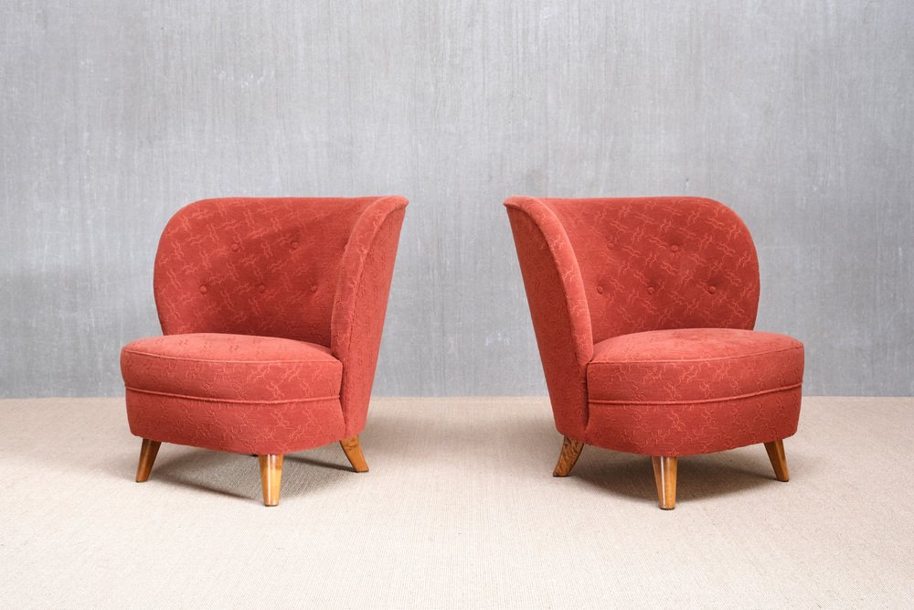 Sessel aus Rotem Stoff & Birke von Carl-Johan Boman, Finnland, 1940er, 2er Set