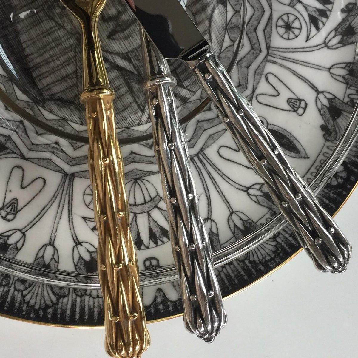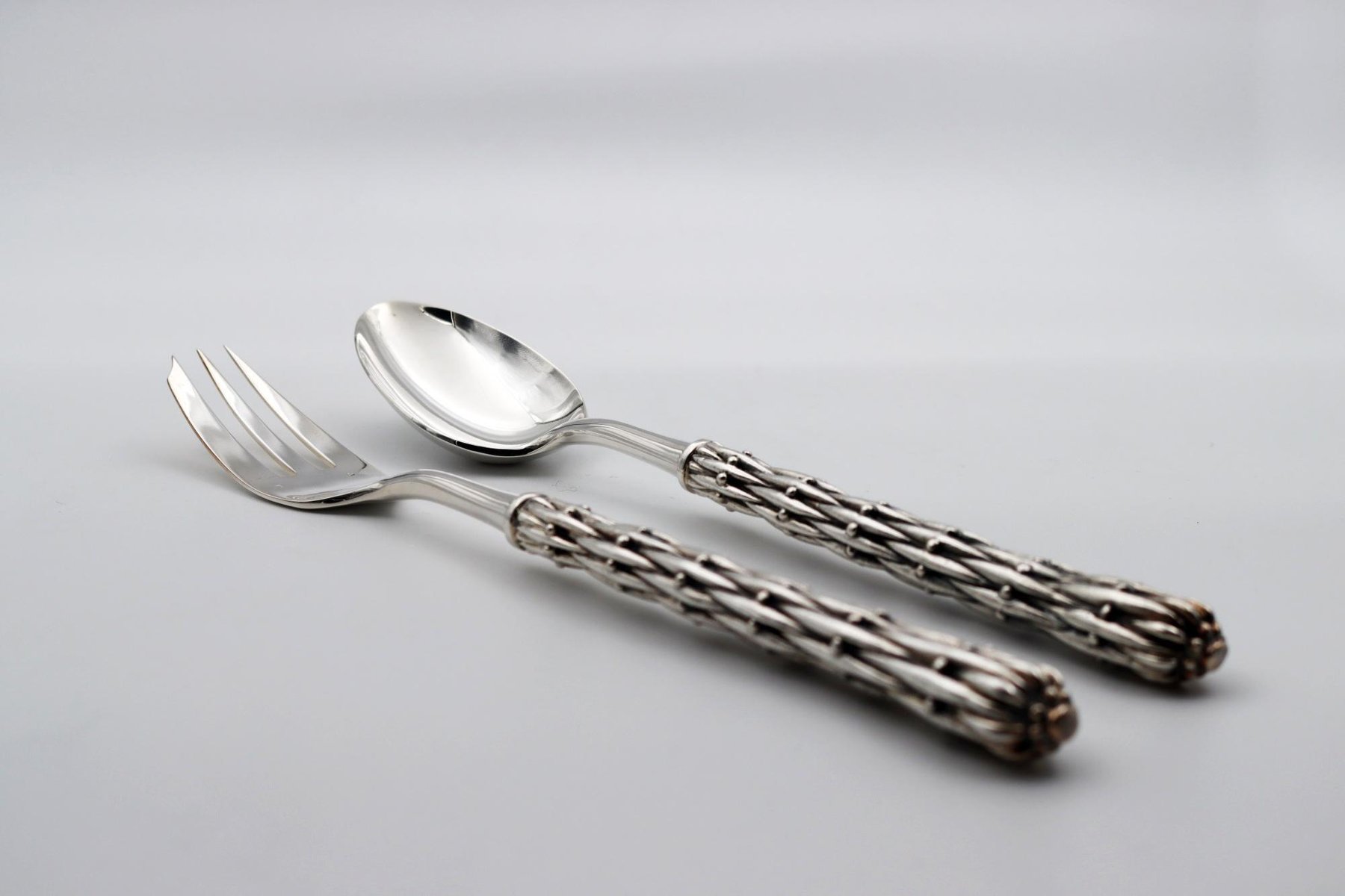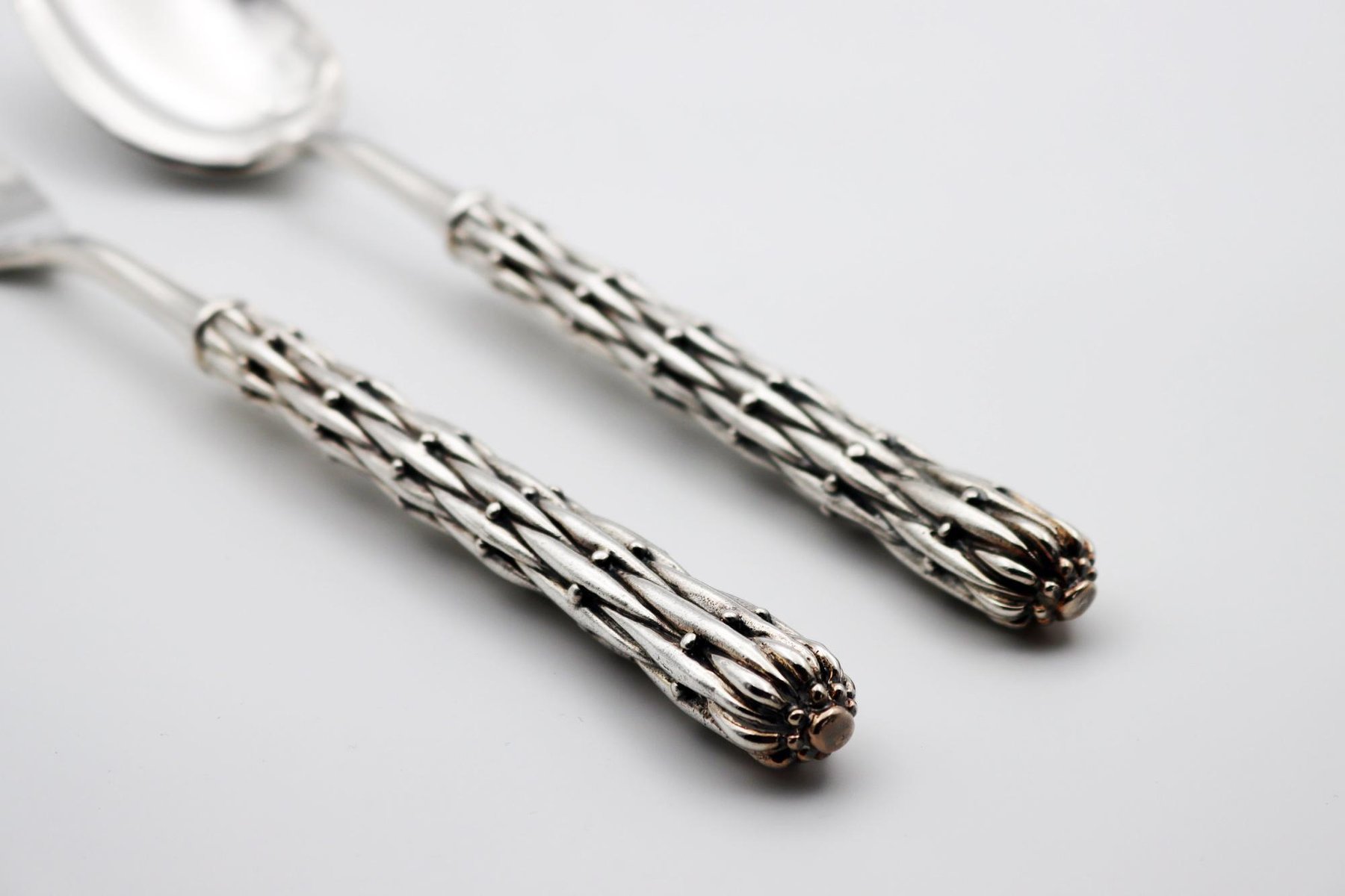 Silber Bronze Servierlöffel und Gabel von Richard Lauret, 2er Set