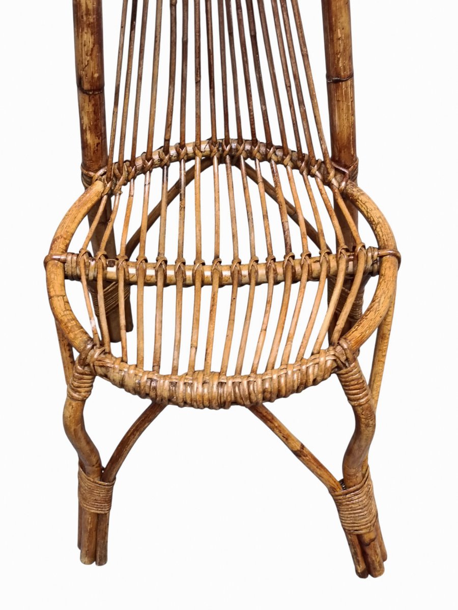 Stuhl mit hoher Rückenlehne aus Bambus & Rattan, 1960er