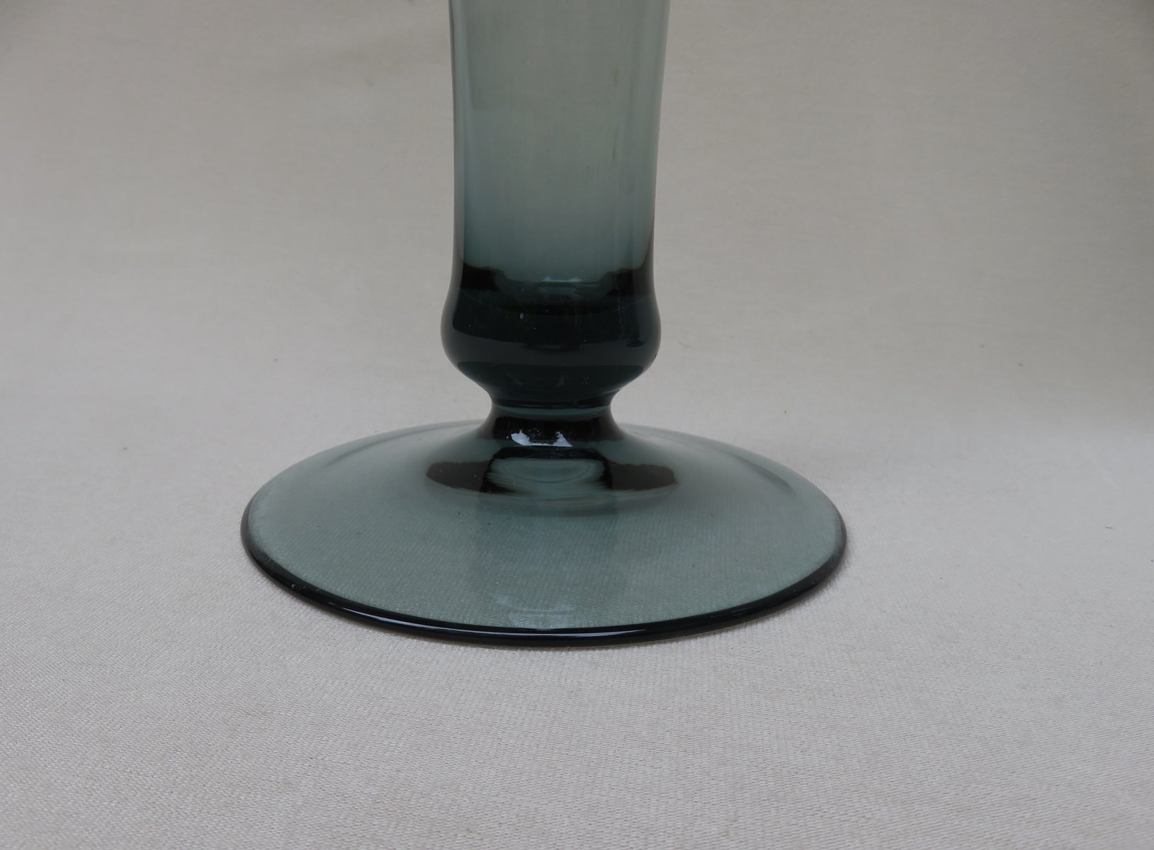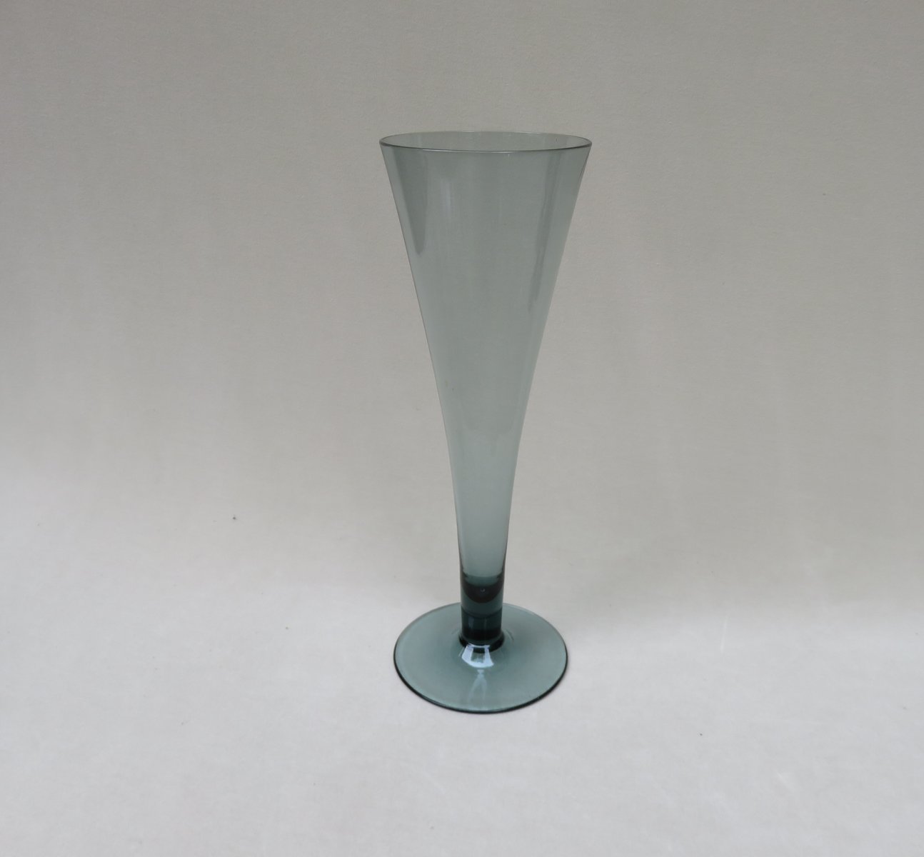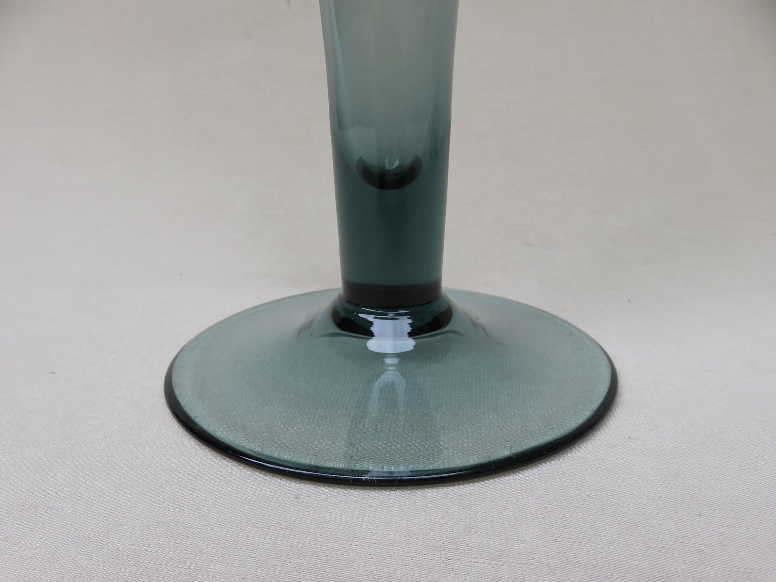 Set of 6 vases, designed by Prof. Wilhelm Wagenfeld in 1950 and 1951 for WMF, made of tourmaline colored glass - an elegant set. All vases are made of thin-walled glass.