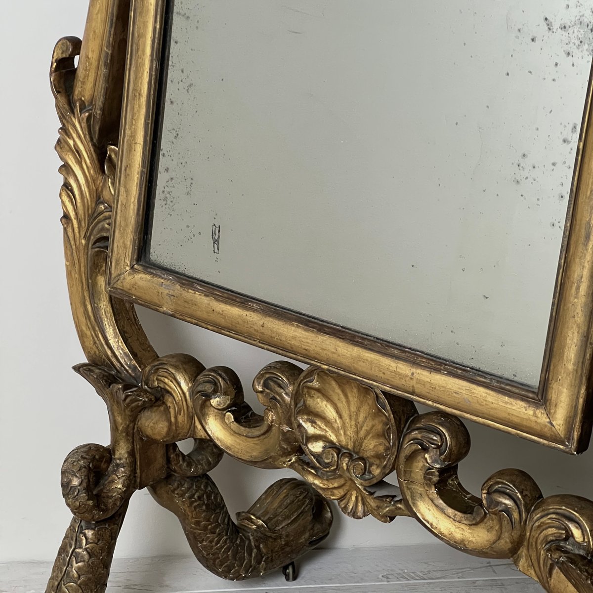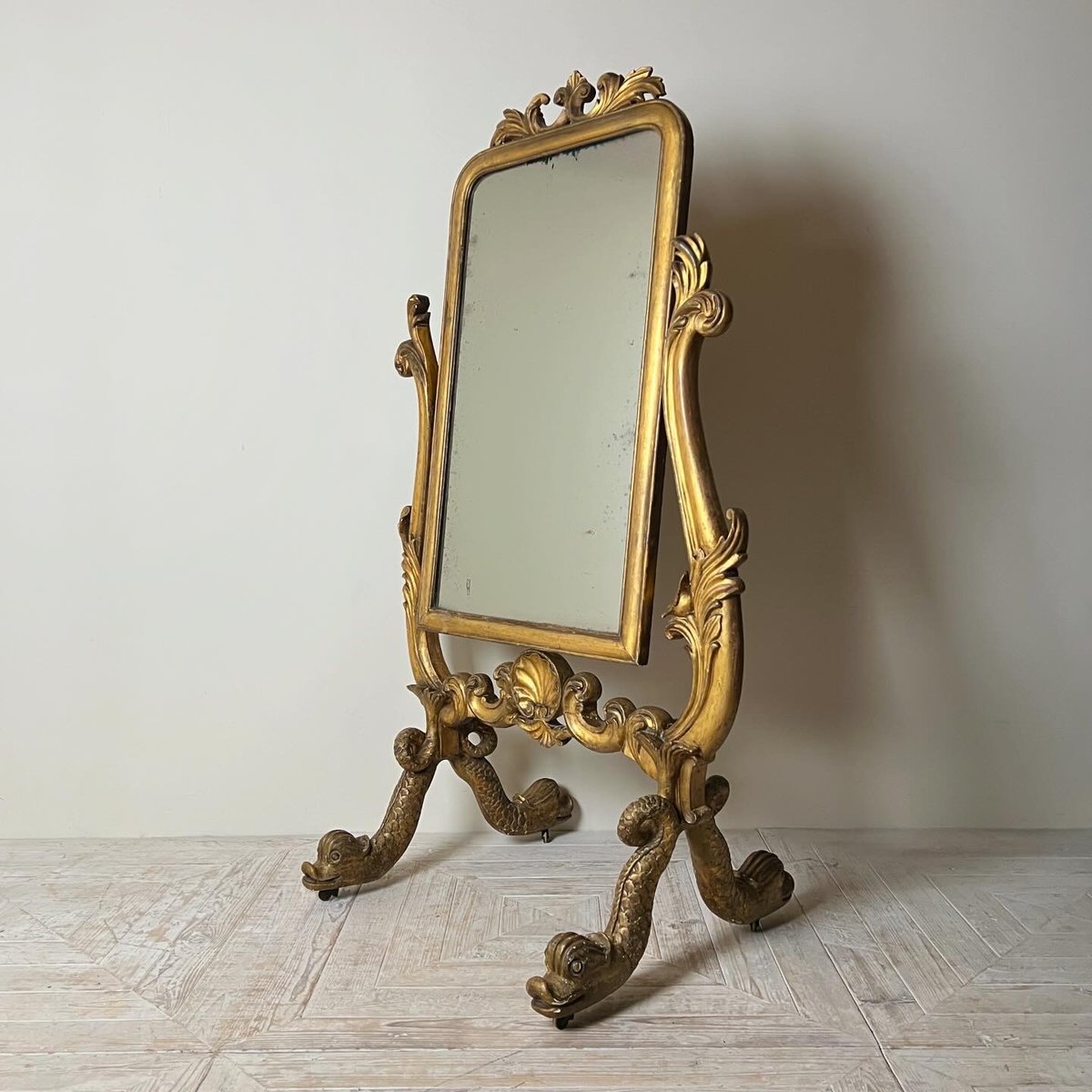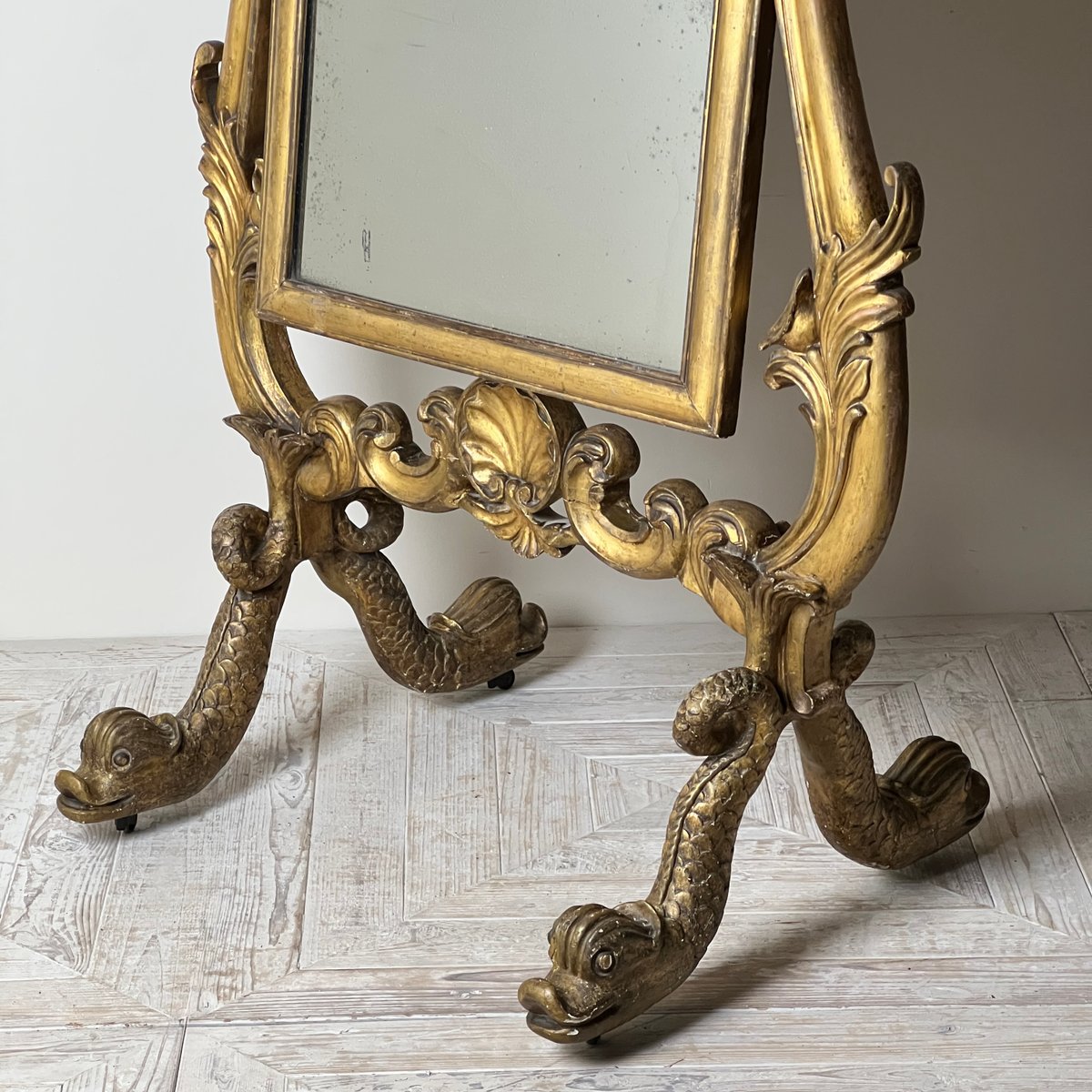 Venezianischer Cheval Spiegel mit geschnitztem Rahmen aus vergoldetem Holz