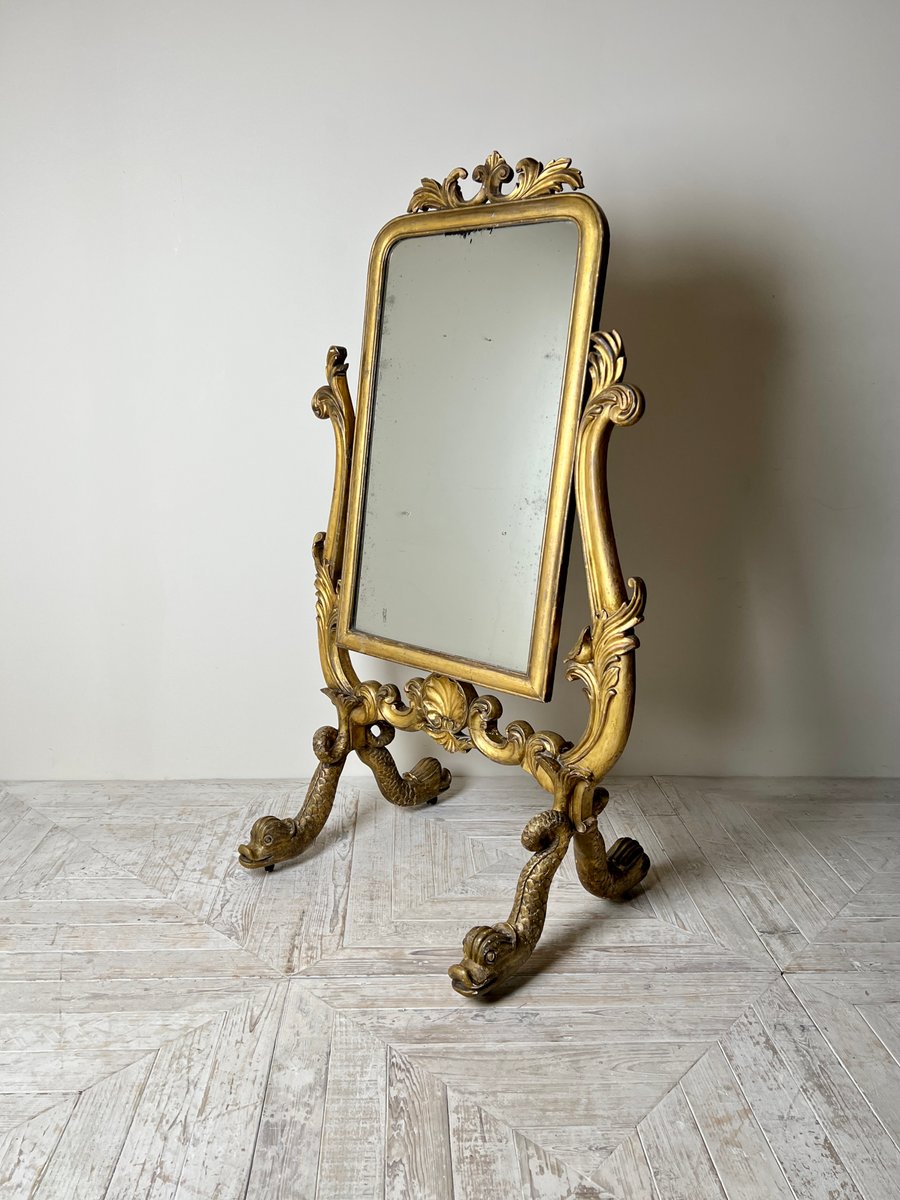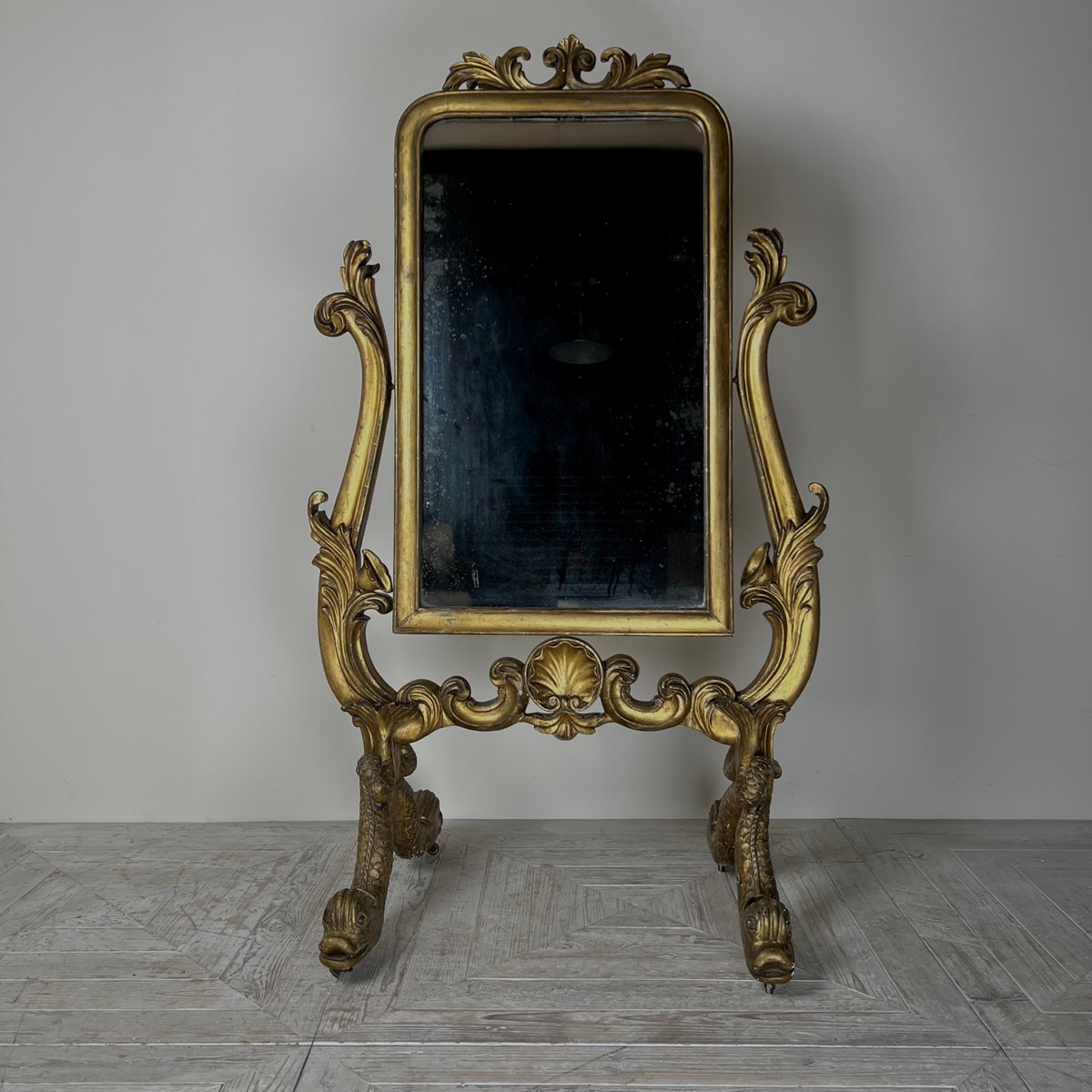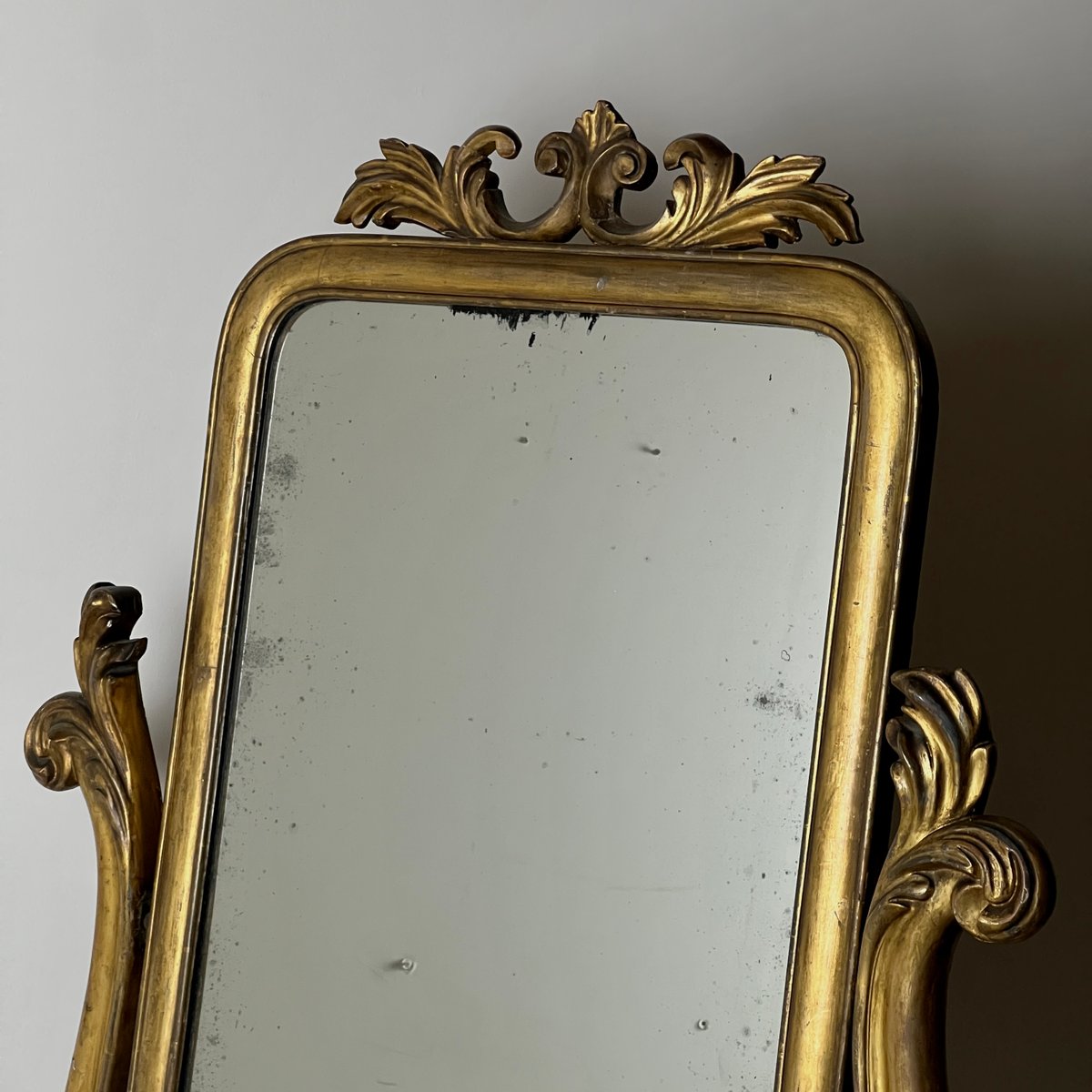 Venezianischer Cheval Spiegel mit geschnitztem Rahmen aus vergoldetem Holz