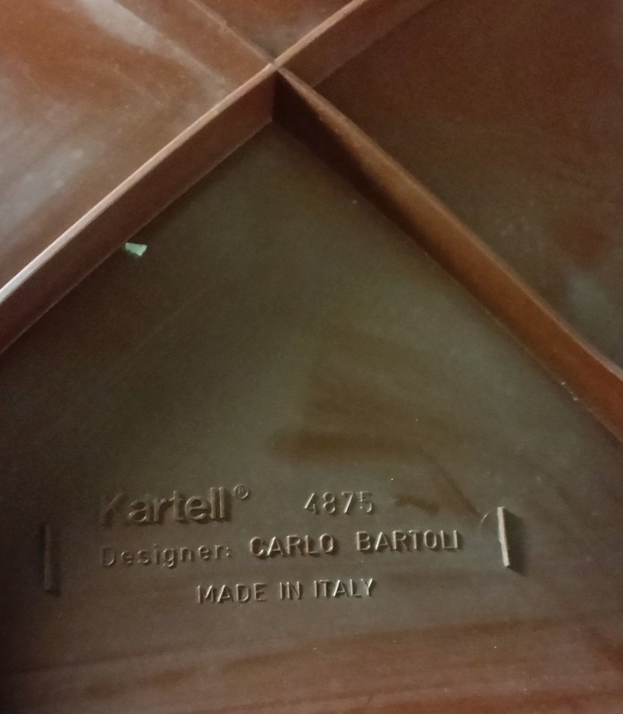 Die auf luxuriöses Plastikmobiliar und Dekorationen spezialisierte italienische Designmarke Kartell wurde 1949 von Giulio Castelli (1920 - 2006) und seiner Frau Anna Ferrieri (1918 - 2006) in Mailand gegründet. Als Sohn eines Plastikforschers war Castelli von experimentellen, neuartigen Materialien von klein auf sehr angetan und studierte später chemische Verfahrenstechnik bei dem Nobelpreisträger und Chemiker Giulio Natta. Währenddessen studierte Ferrieri am Polytechnikum in Mailand bei dem einflussreichen, neo-rationalistischen Architekten und Designer Franco Albini.